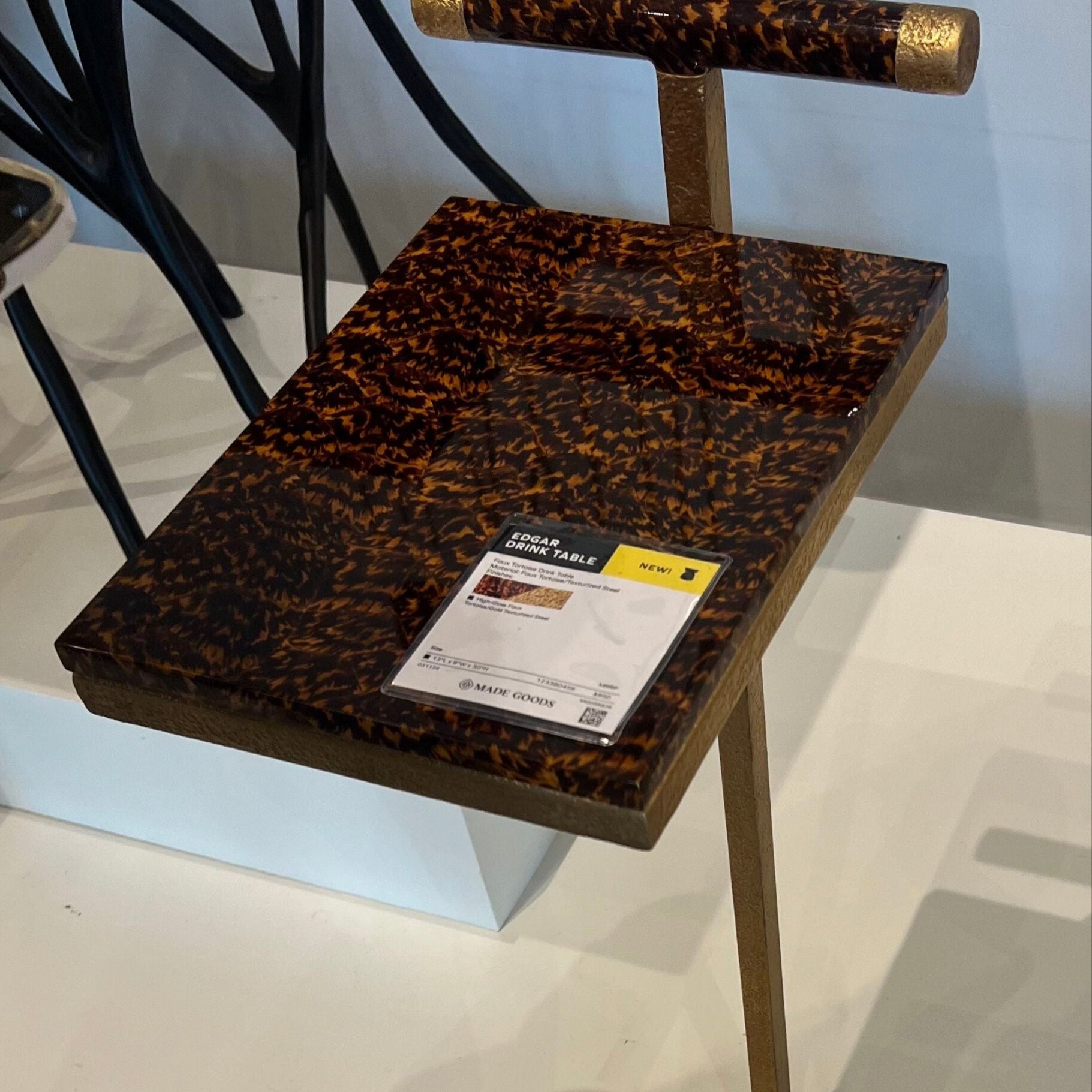 The Edgar Drink Table in Faux Tortoise from Made Goods features a traditional drink tabletop design, perfect for holding items or as a standalone accent. Its high-gloss faux tortoise finish delivers a richly textured surface with striking visual depth.