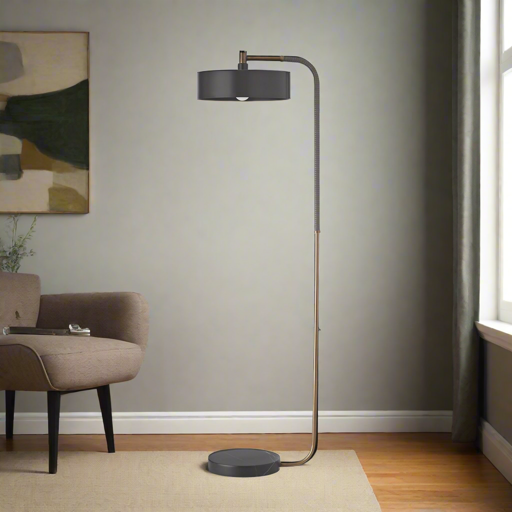 Aaron Floor Lamp Heritage Brass and Black Marble