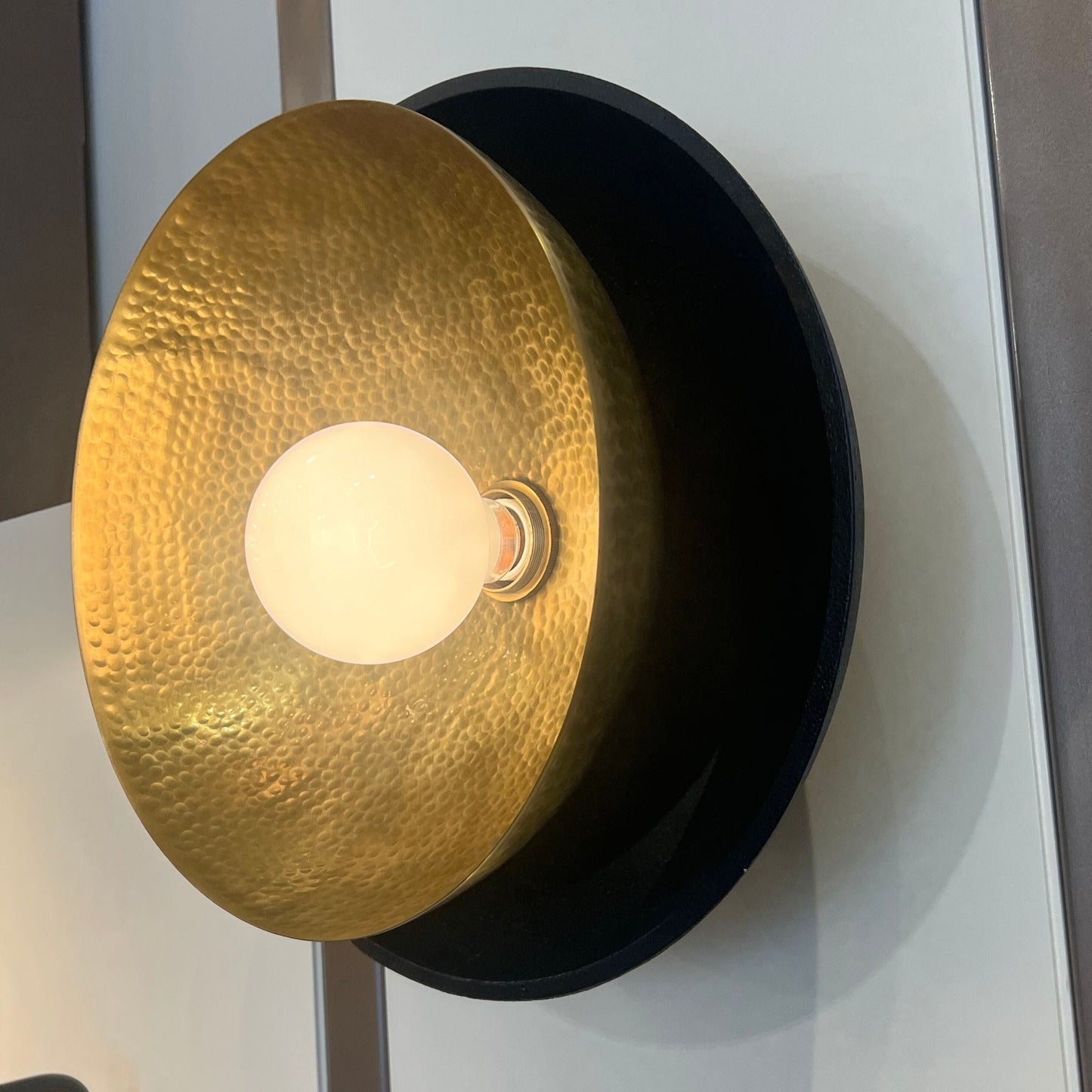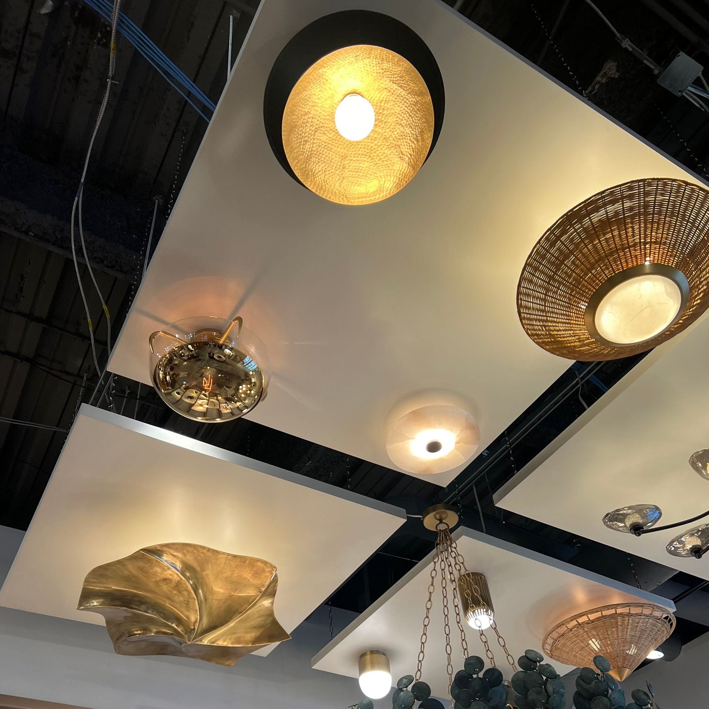 Dual bowls in blackened iron and antique brass are nested to intrigue the eye of the Amani Flush Mount in Blackened Iron from Arteriors Home. Reminiscent of the minimalist design found in japan, this textured fixture adds a touch of zen to any setting.