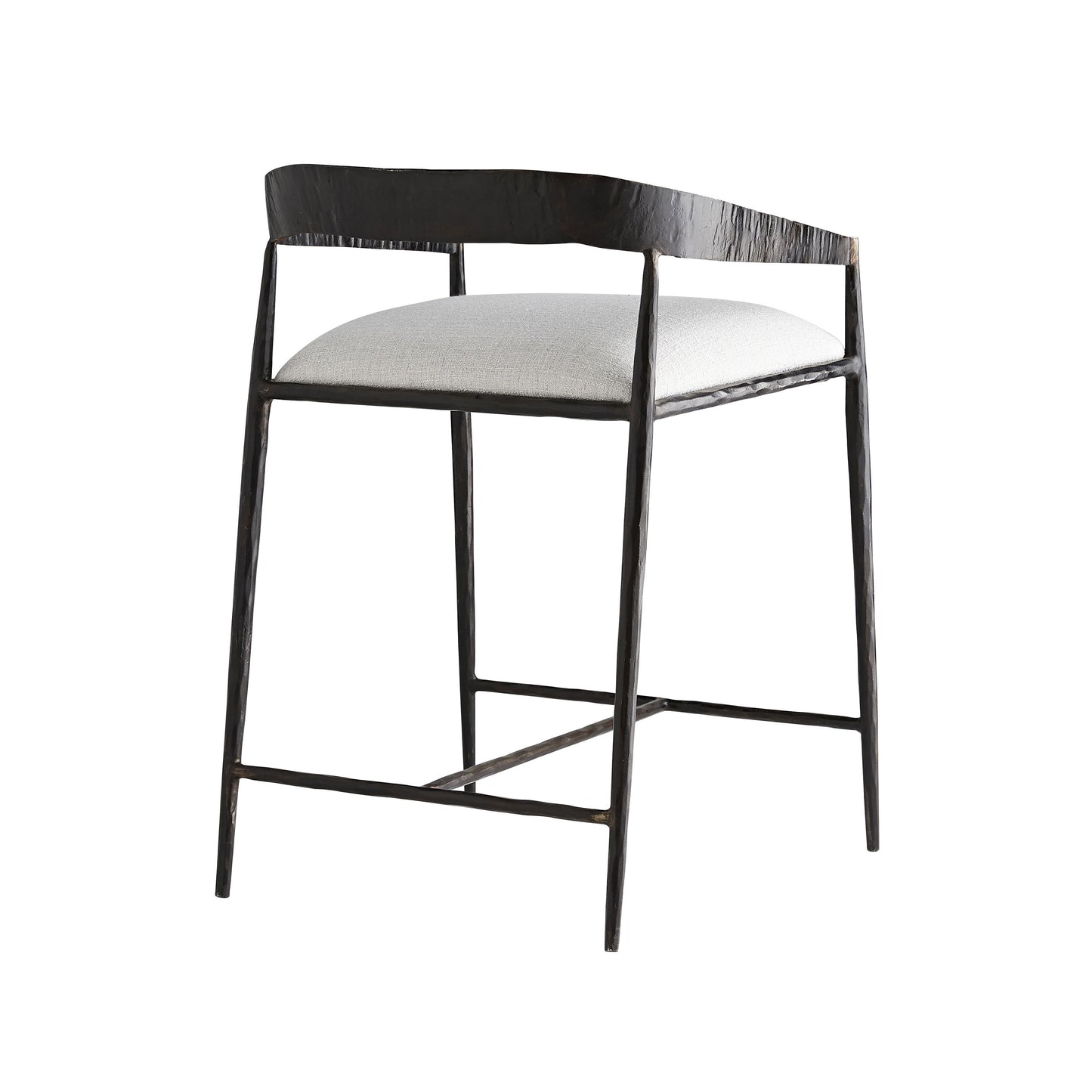 Sharp angles and an unrefined curvature define the bold aesthetic of the Ansel Counter Stool from Arteriors Home. Natural iron has been hammered by hand to create the rich impressions seen along the shallow back, while the hand-forged legs yield more delicate details. The seat is covered in sterling linen, elevating this versatile stool. *Also available as a barstool.