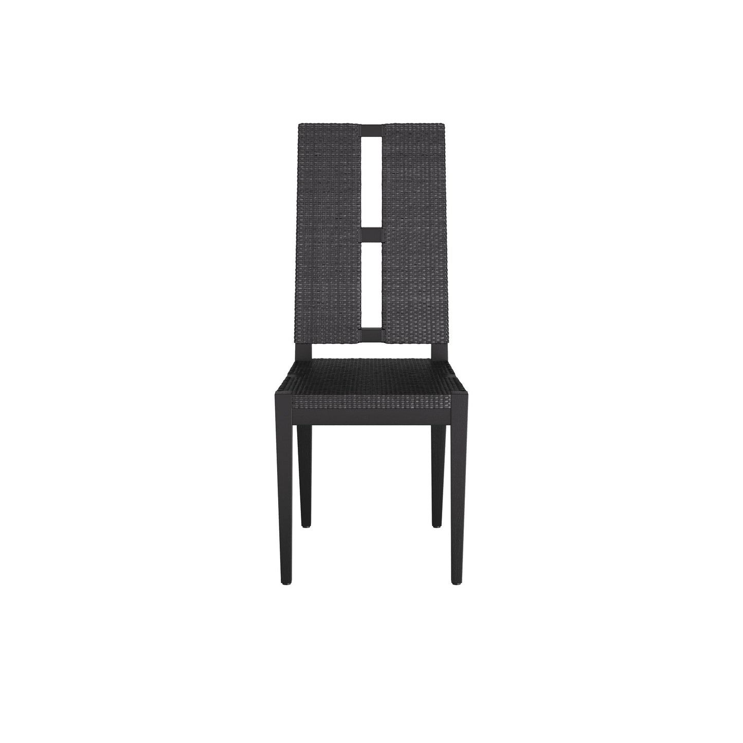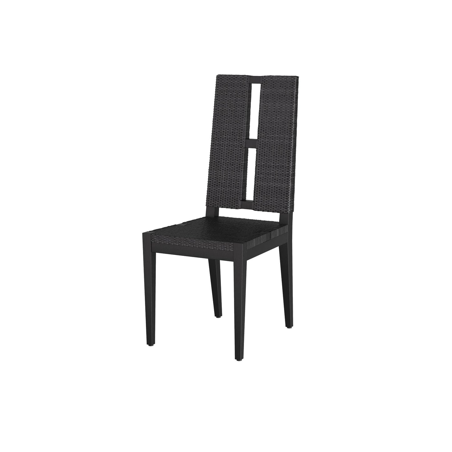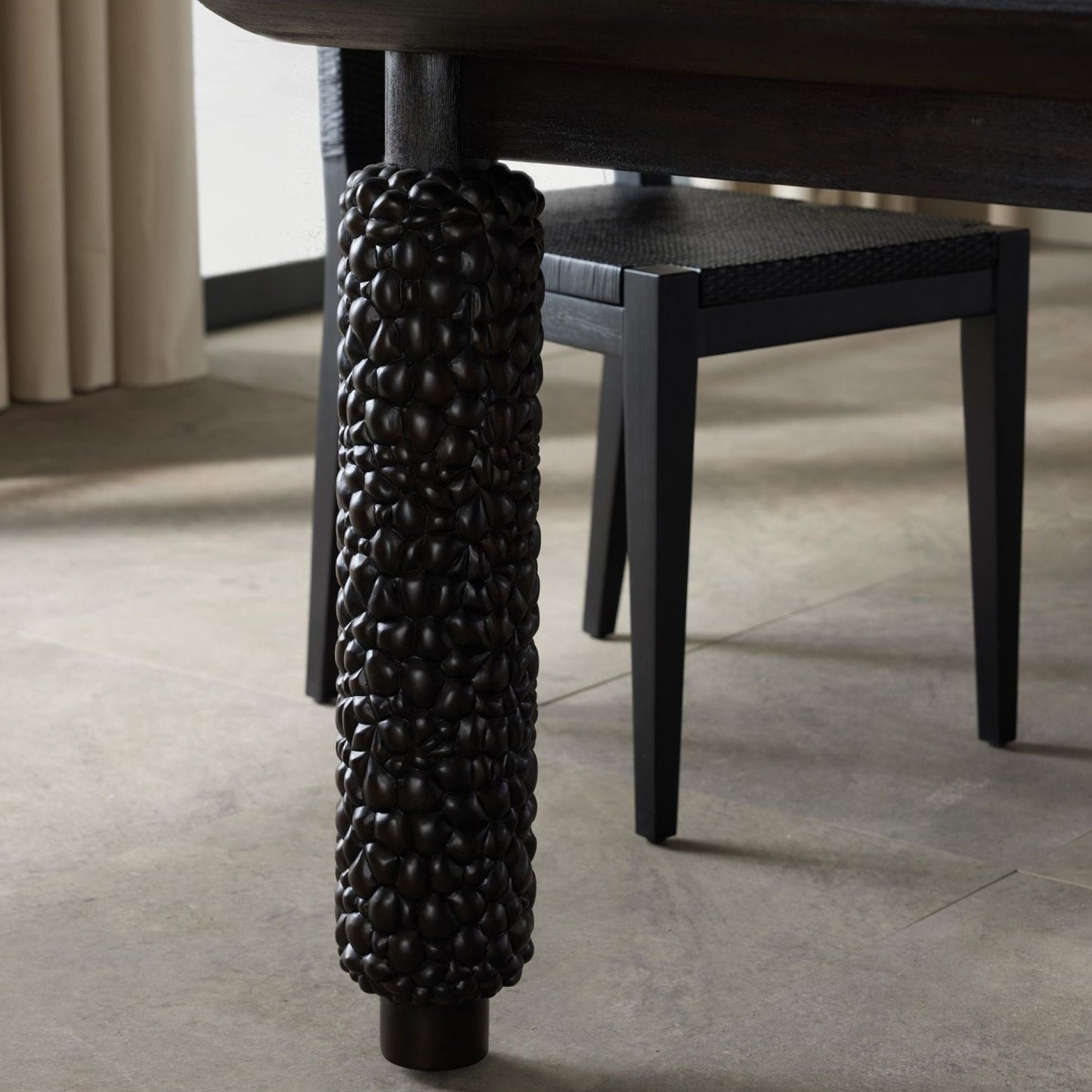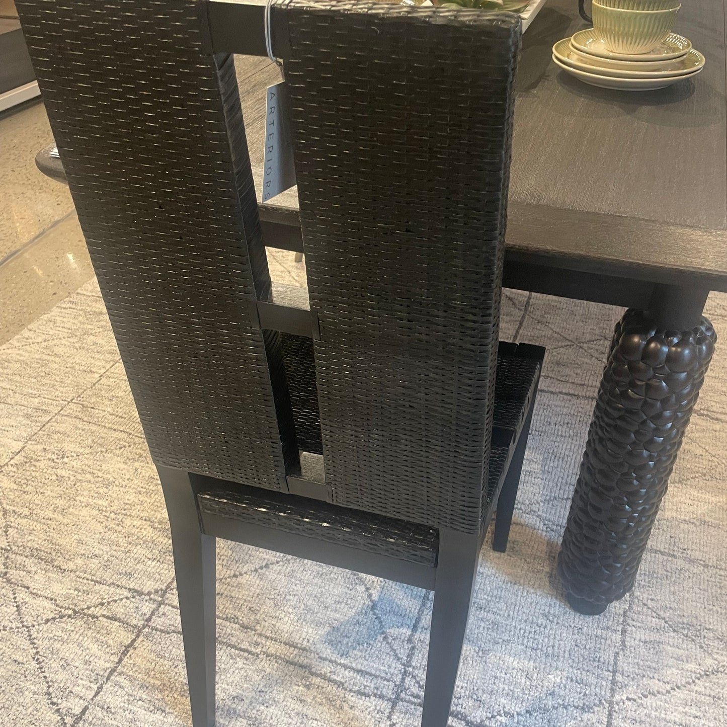 The streamlined modernism of French 1940s design is embodied in the sleek Antonio Dining Chair Ebony Wood and Rattan from Arteriors Home. High-backed with chic rectangular cutouts for easy carrying, its wide seat supports comfortable conversations.