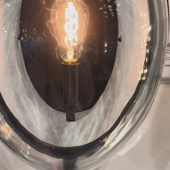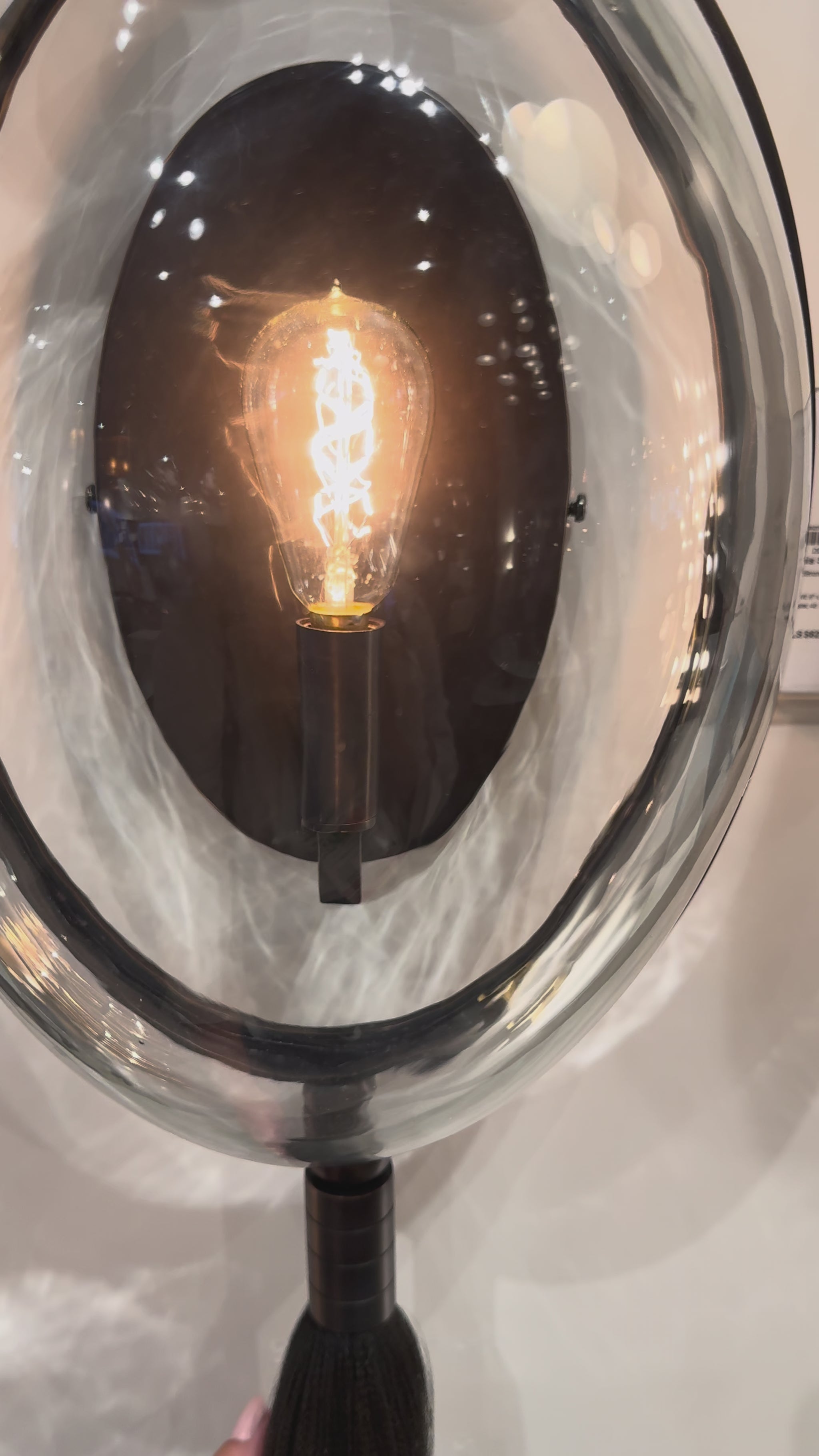The Arteriors Home Aramis Wall Sconce in Bronze was designed by Barry Dixon and was inspired by McQueen's ponytailed models with face masks. This unique sconce is cast in bronze with a convex glass shield and a brass wire ponytail.