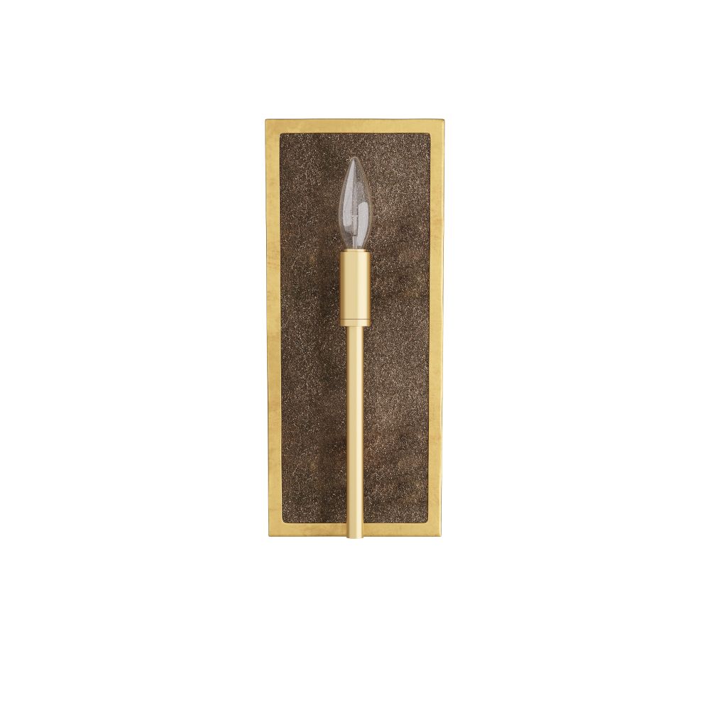 The Avanti Sconce in Brown Suede by Arteriors Home features a unique combination of a textural backplate in brown suede and an antique brass finished iron support and frame. This transitional sconce is designed to showcase an elegant Edison bulb and is accented with a scoreline finish.