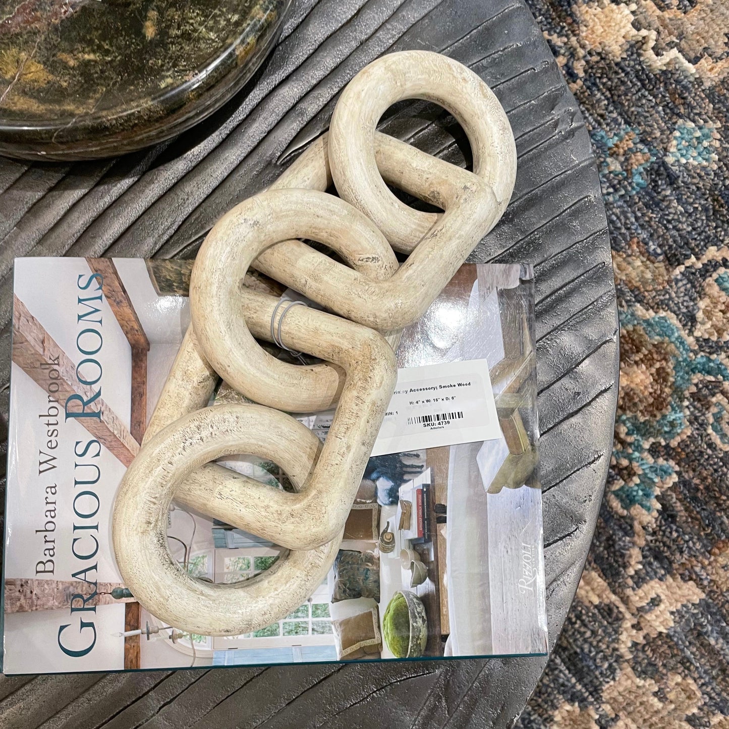 The Brinley Accessory from Arteriors Home features simple geometrics intermingled with fashion to form this unique interlocking wood sculpture. A smoke finish accentuates the natural wood grain, establishing a rustic quality that parallels with its modern form.