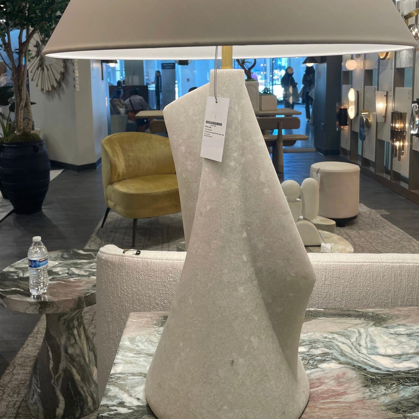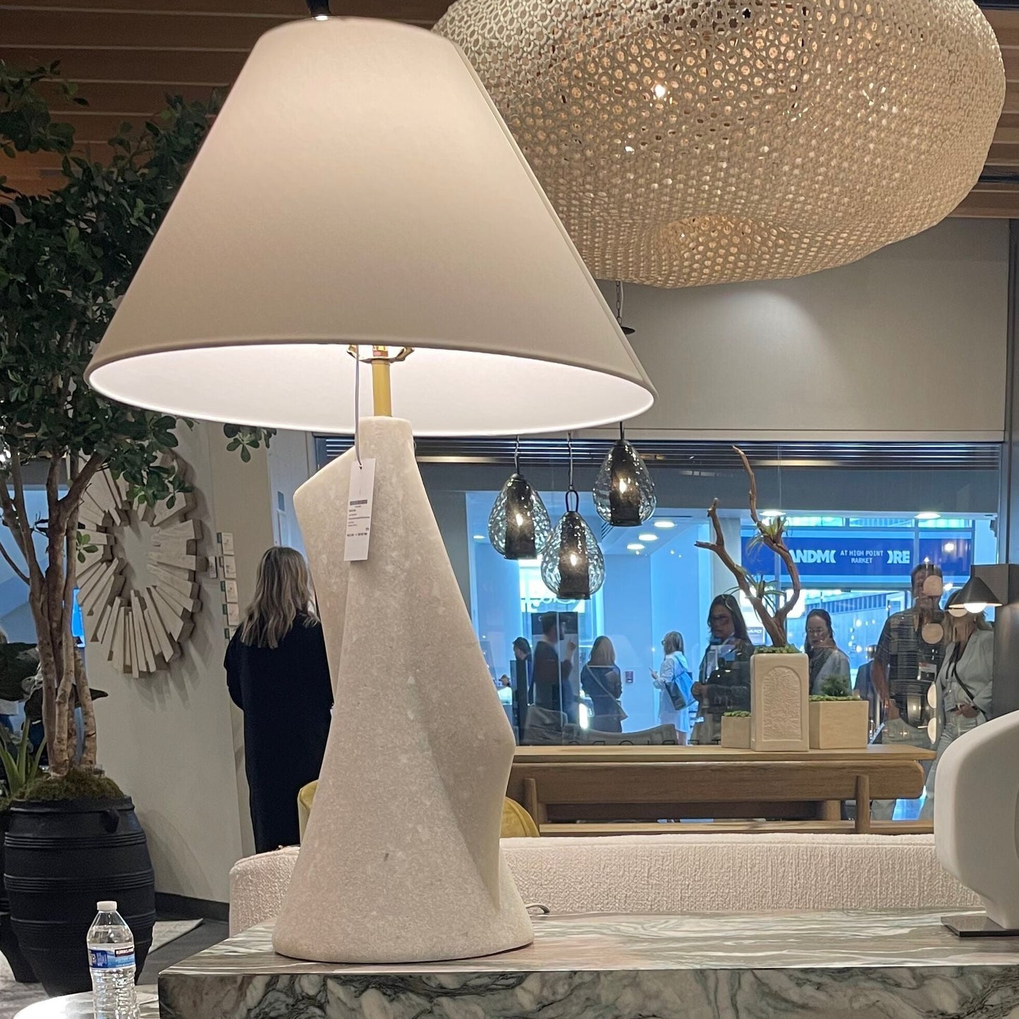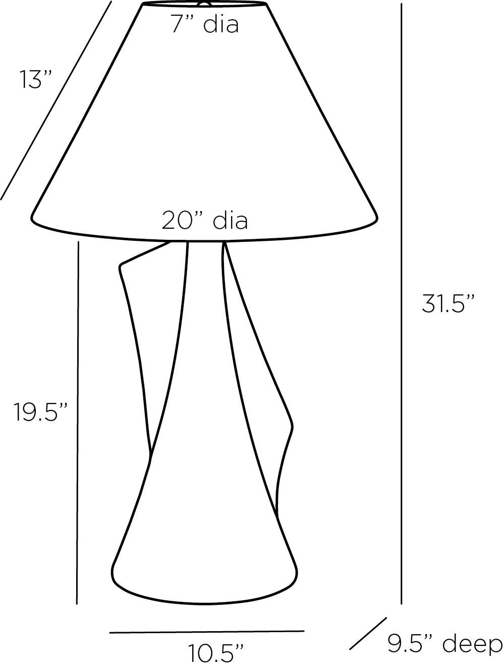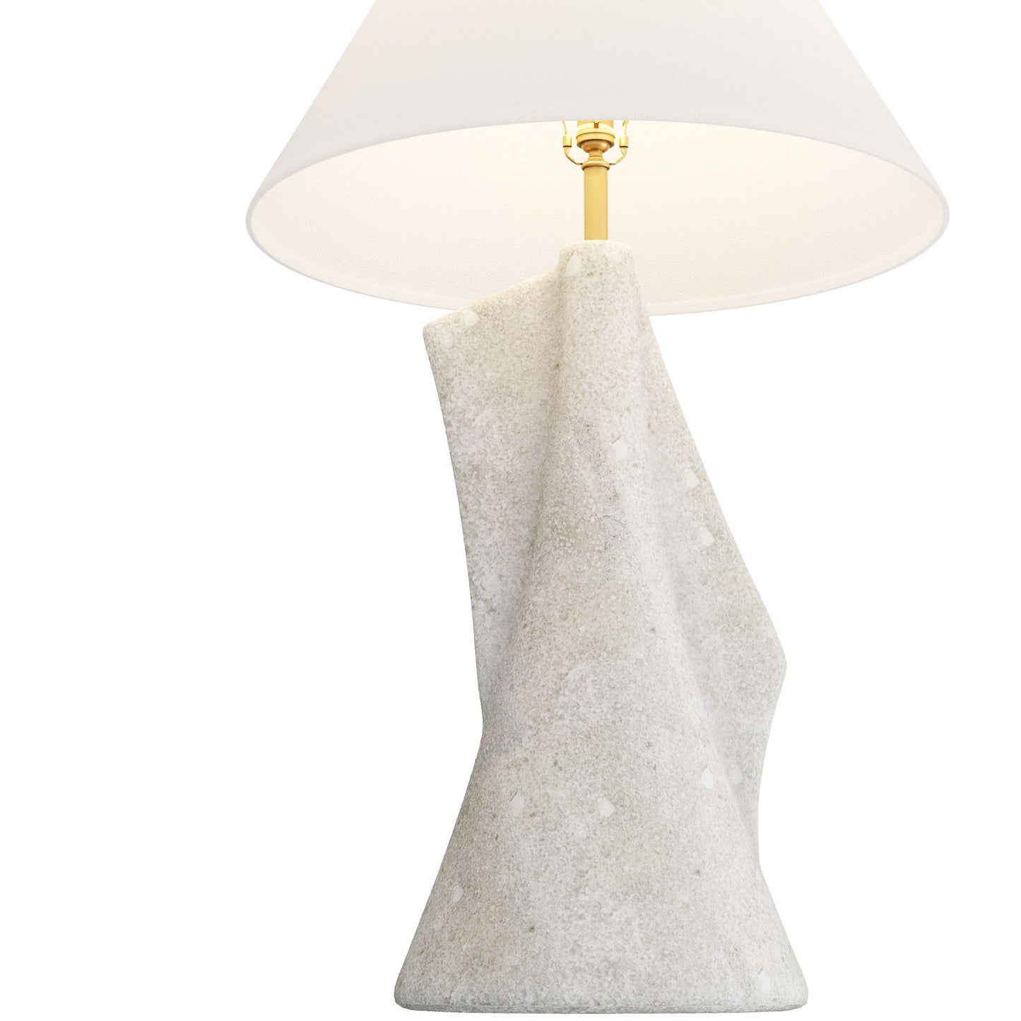 Crafted from ivory glass stone composite, the Bruce Lamp by Arteriors Home is an elegant desktop sculpture with a modernist design. Its unique form features "fins" on both sides that add visual interest.