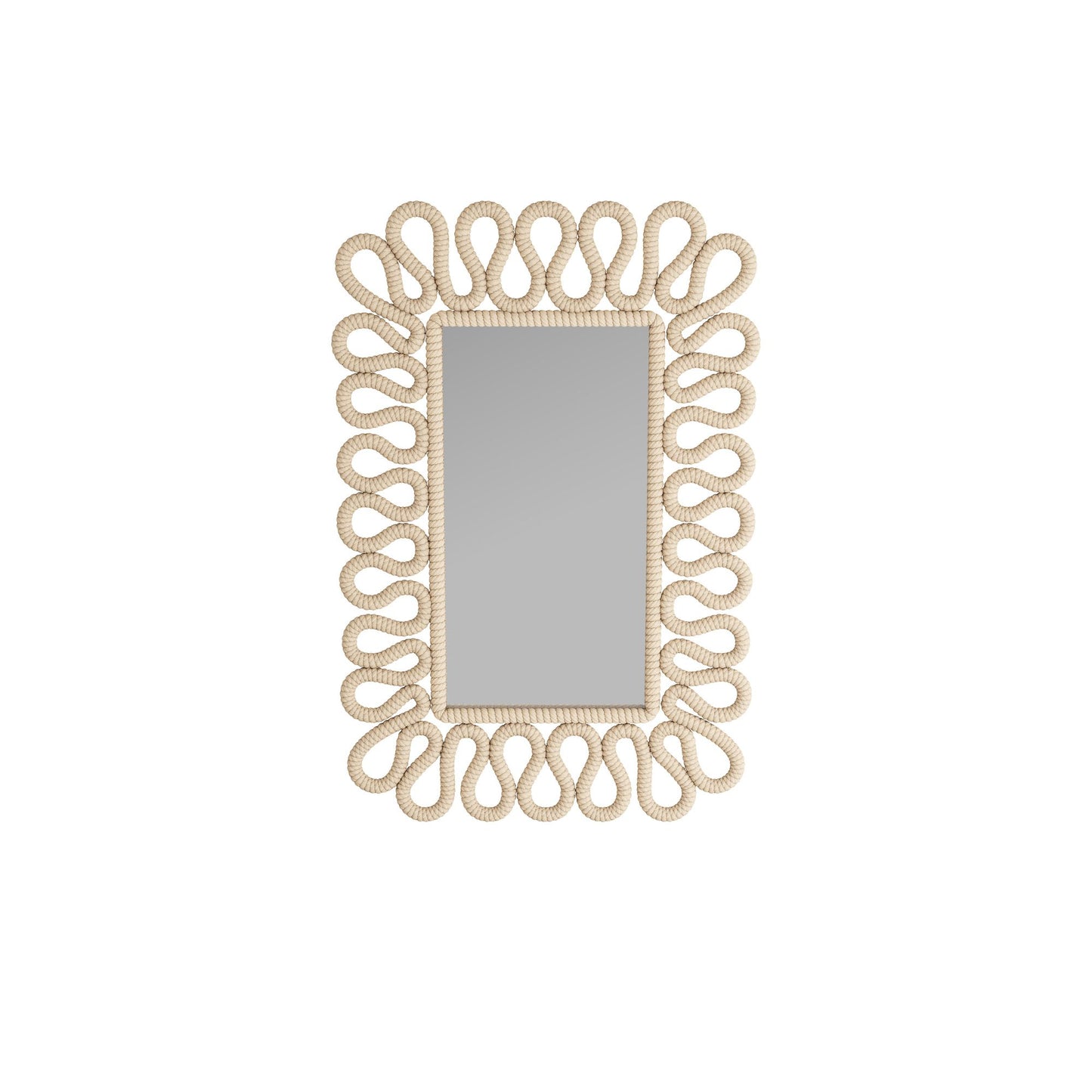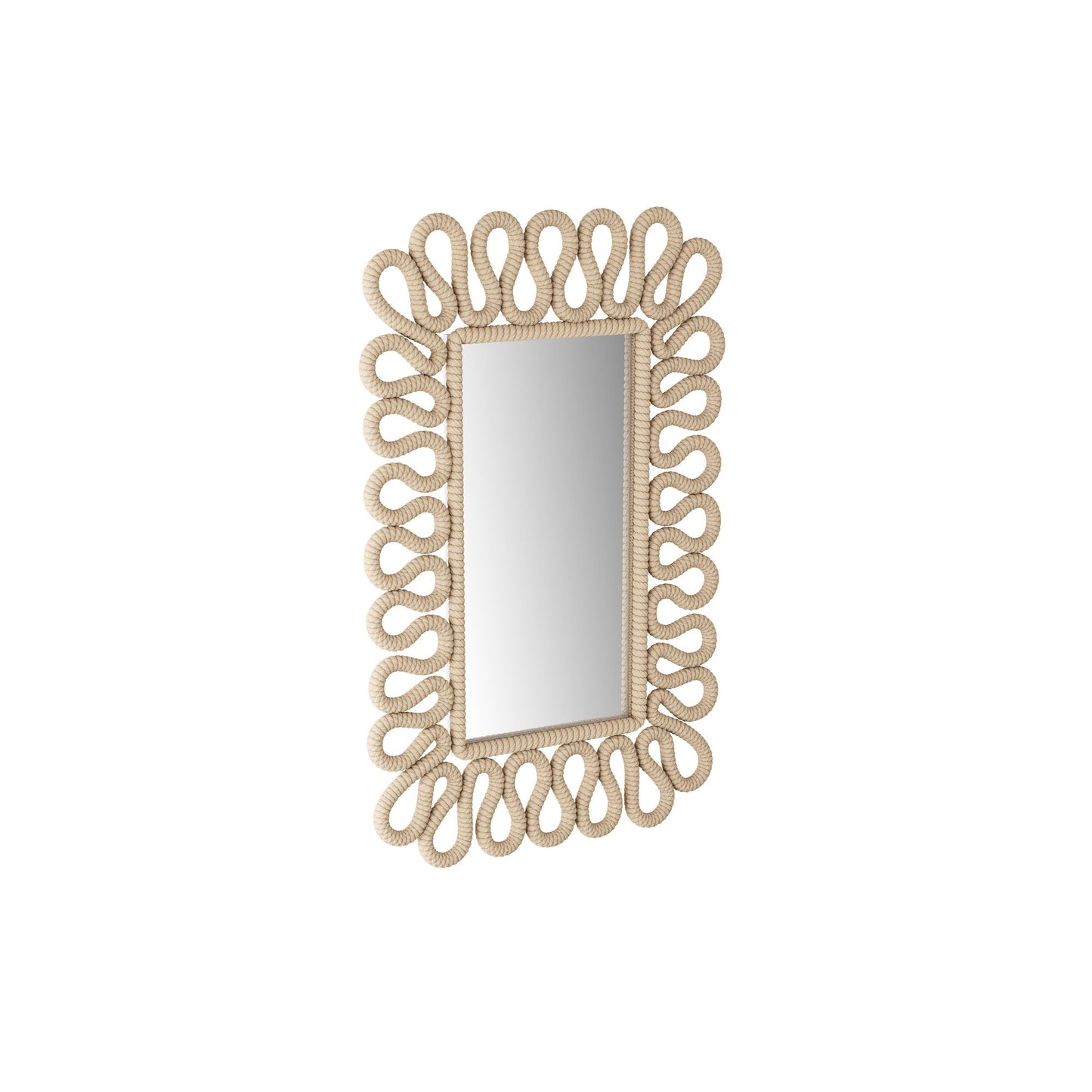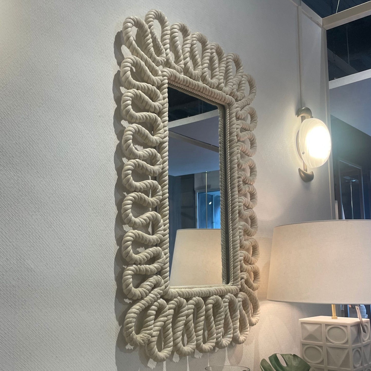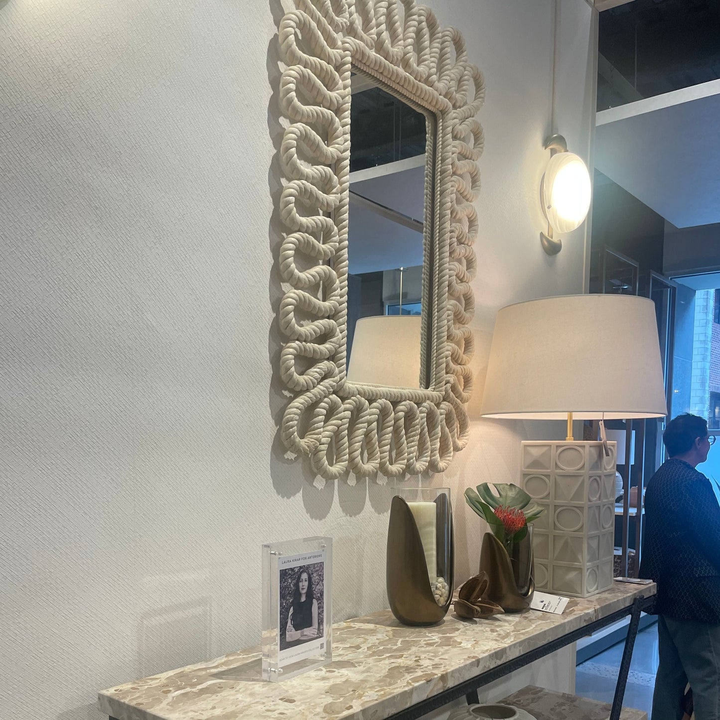 As a lyrical counterpoint, Laura Kirar’s Caracol Mirror in Ivory Rope from Arteriors Home features rope lines that mimic a sound wave; fluid line wrapping around a rectangle; enough graphic impact to become artwork in the room or a playful frame to ones reflection.