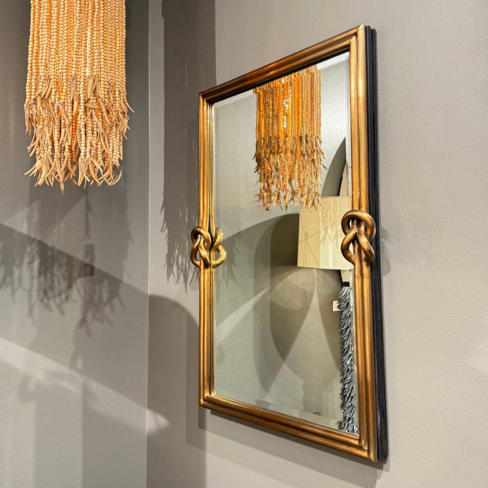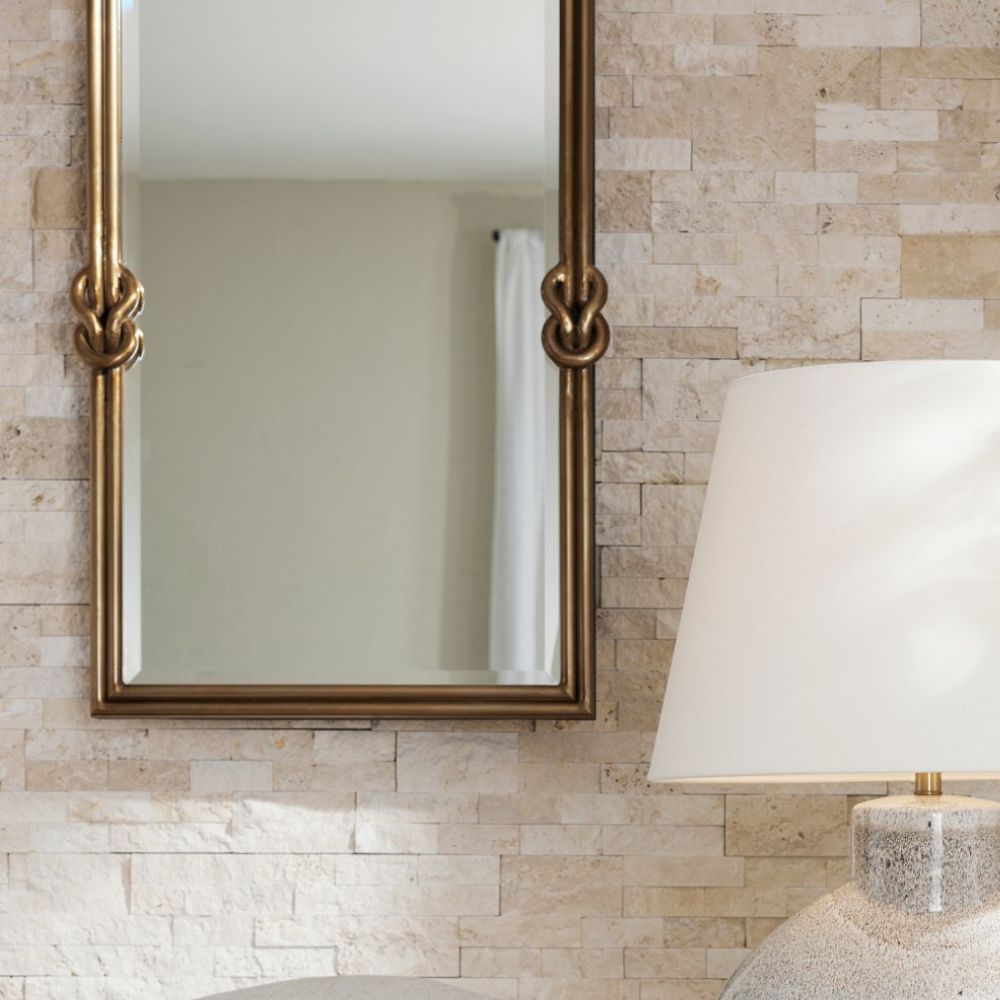 Expertly designed with a touch of nautical influence, the Carruth Mirror in Antique Brass from Arteriors Home features a detailed frame adorned with captivating textures. Coated in antique brass, this versatile piece can be displayed horizontally or vertically, secured by a sturdy cleat at the back.