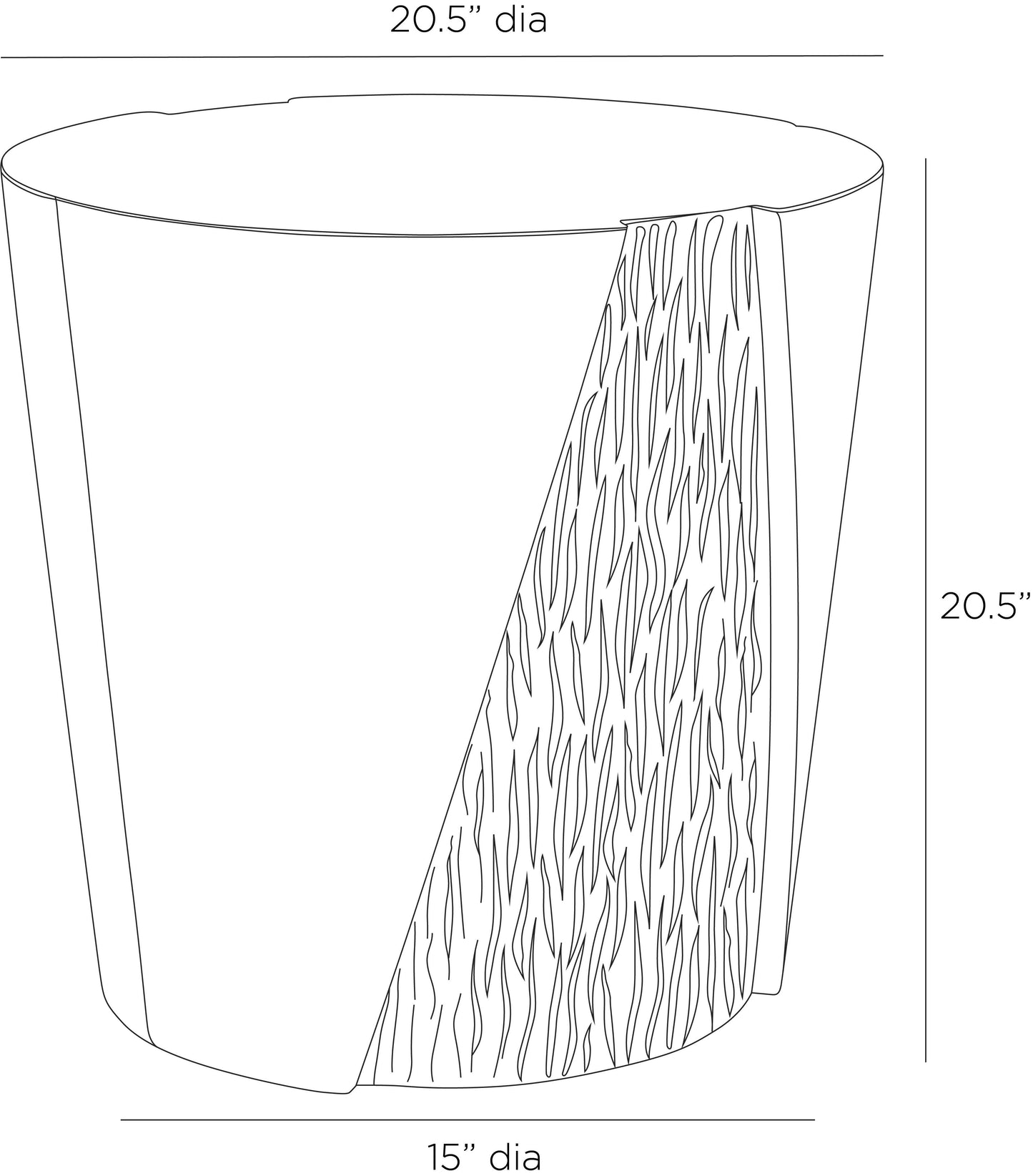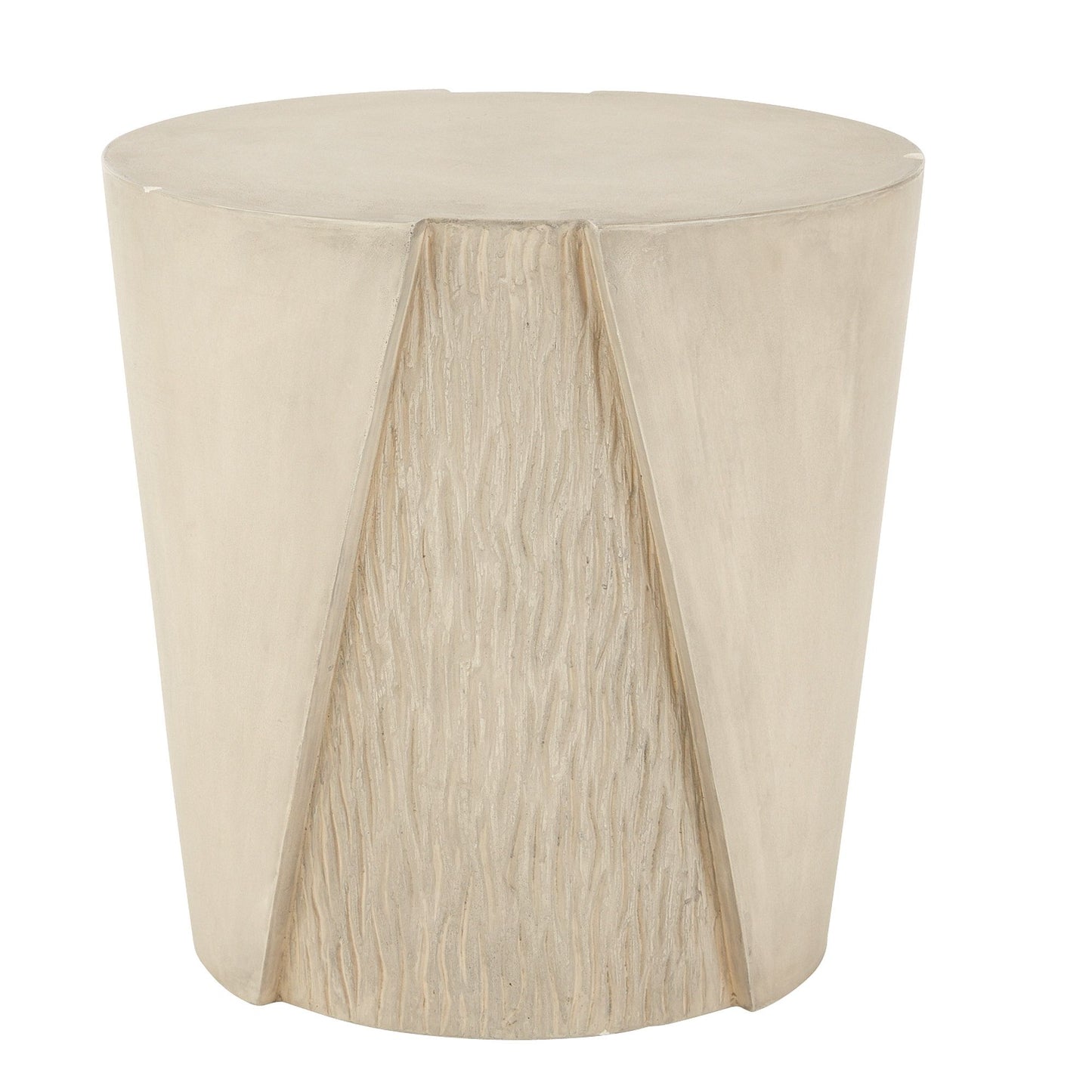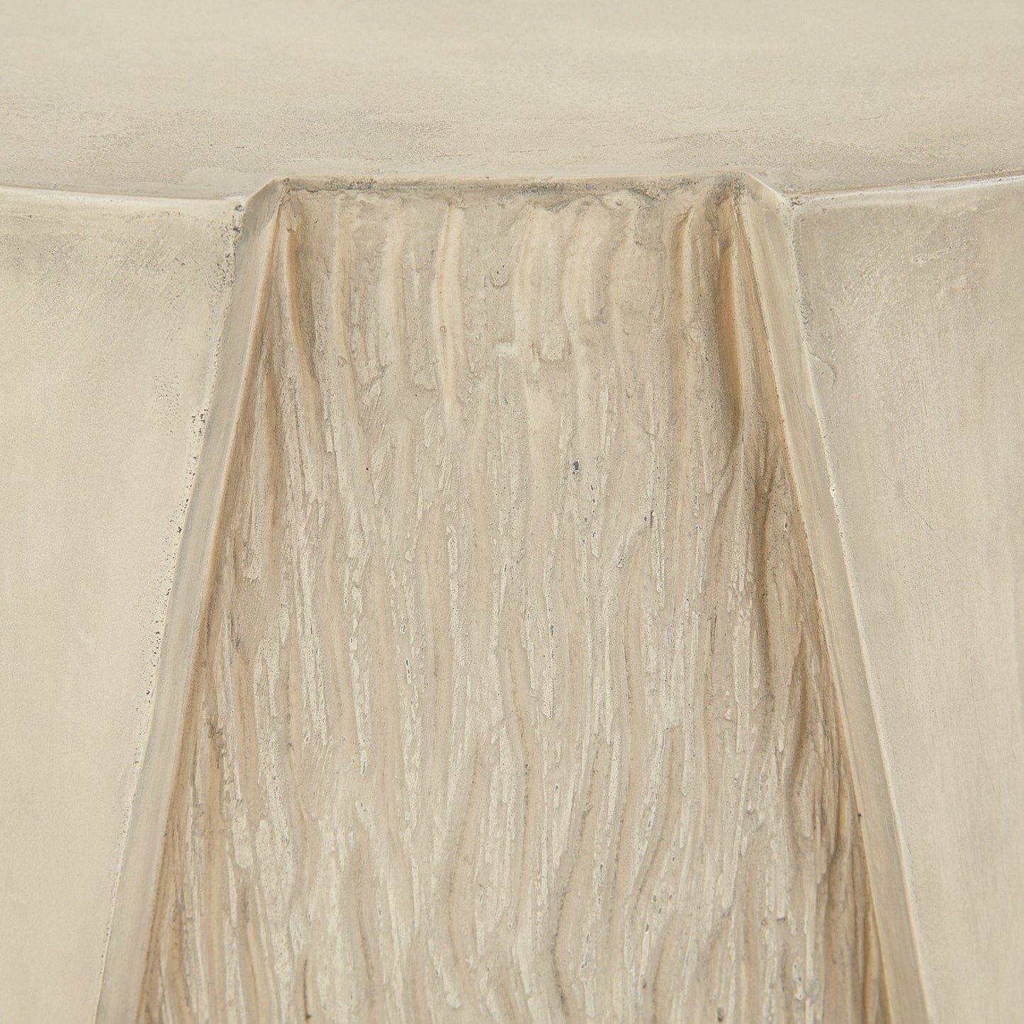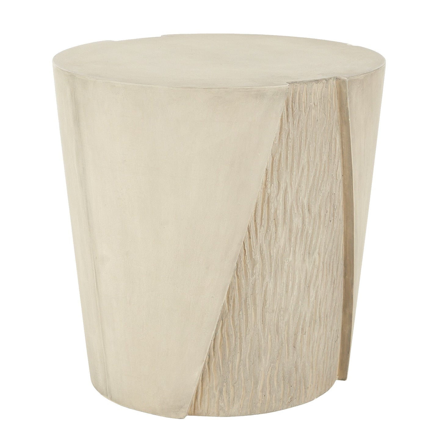 Inspired by the shape of a split tree trunk, the layered Creedon Outdoor End Table in Putty Concrete from Arteriors Home is a mix of smooth and rugged textures. formed of concrete composite in a natural putty shade, it possesses an organic appeal that is naturally at home in an outdoor living space.