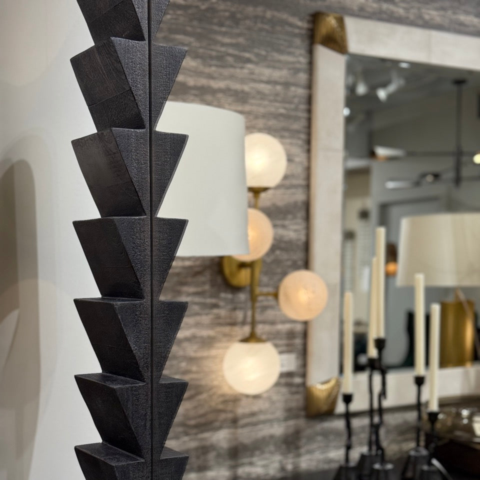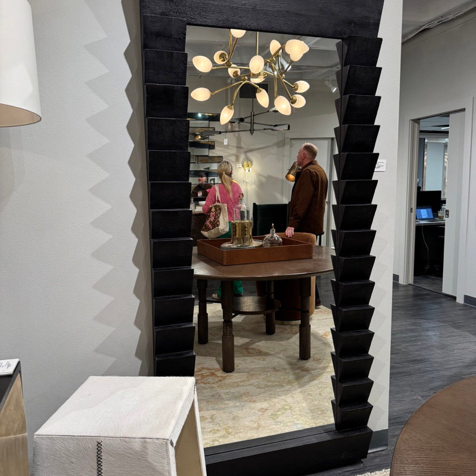 Accented with exaggerated zigzag details, the rectangular Elkins Floor Mirror in Ebony Wood from Arteriors Home features a strong, textured finish lending a superpowered effect to any interior.