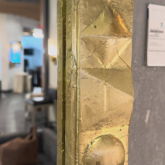 The Laura Kirar’s Empire Floor Mirror in Antique Brass from Arteriors Home is created of cast aluminum and uses the ideas of origami and geometry as a kind of mystical decorative language conjuring up both treasures of the past and the future.