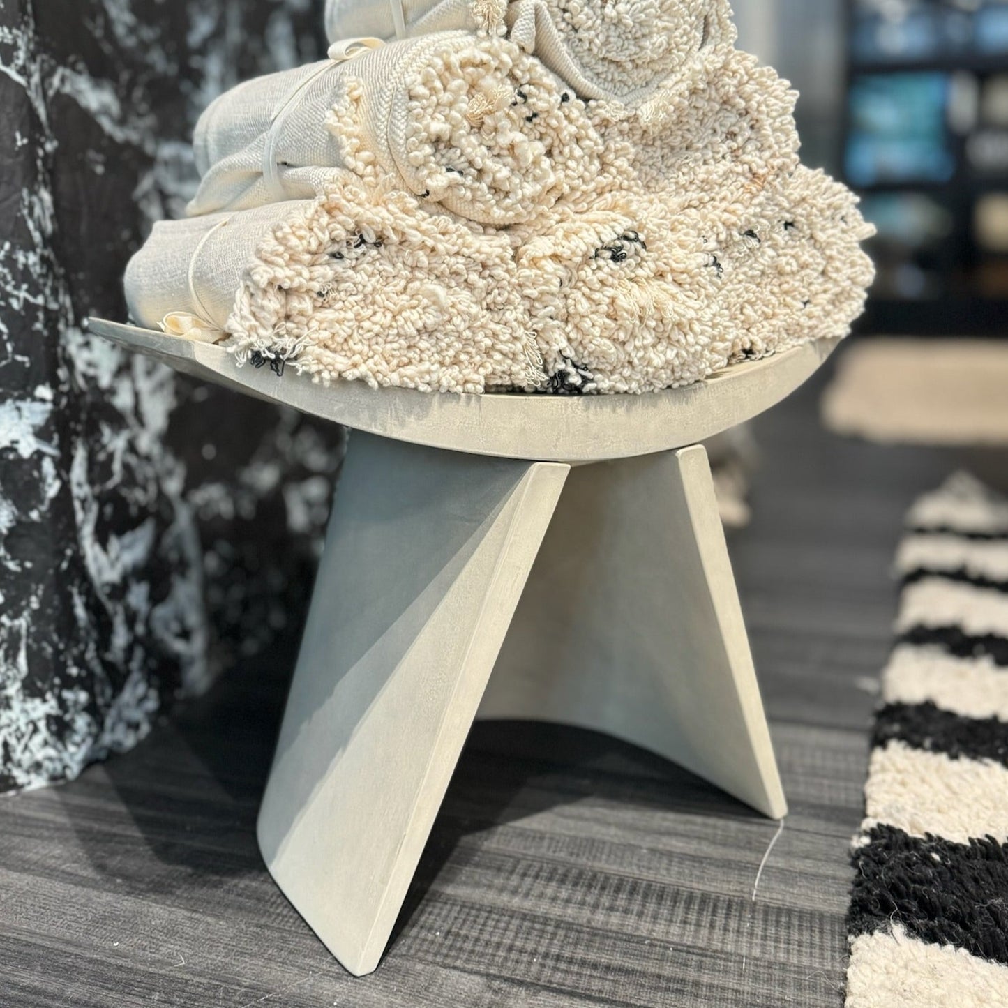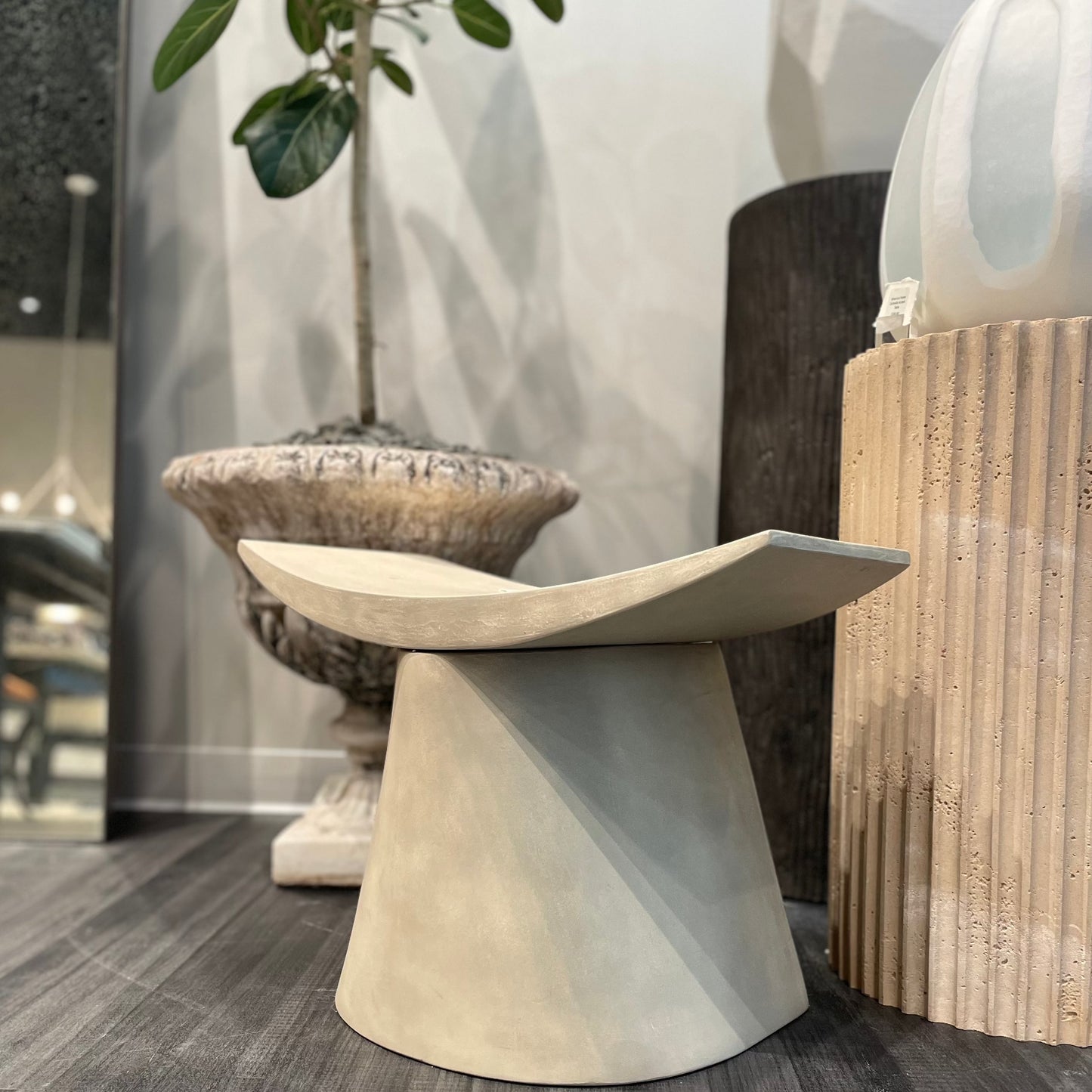 Influenced by a soothing japanese aesthetic, the wing-like Enya Outdoor Stool in Stonewashed Concrete from Arteriors Home adds a ceremonial feel to any outdoor seating area. A stonewashed concrete composite seat balances on a hollow arched base for an airy appearance.