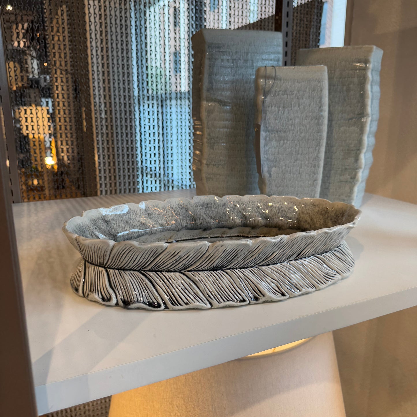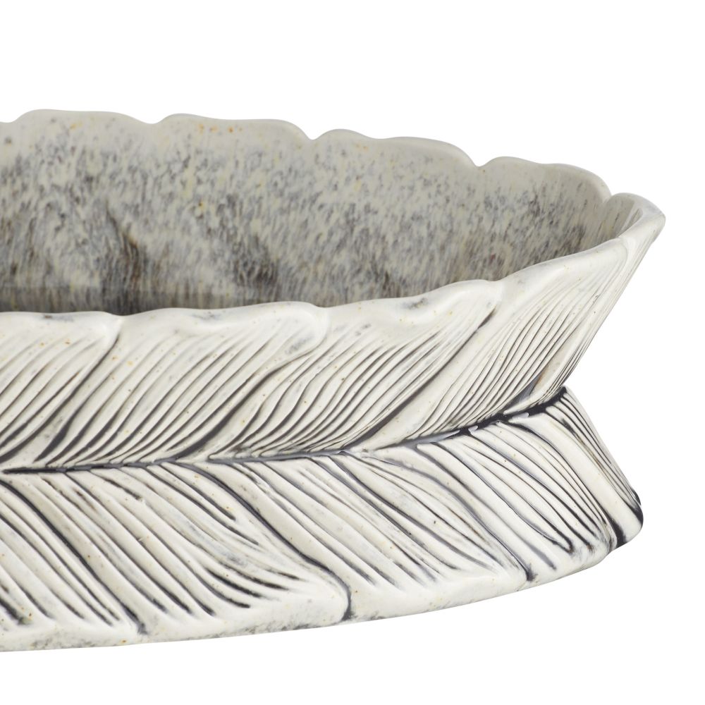 Appearing to mimic the appearance of gathered foliage or feathers, Arteriors Home presents the Faith Centerpiece with its layered shapes that create an illusion of gentle motion. Its textured definition is accentuated by an ice-reactive glaze.