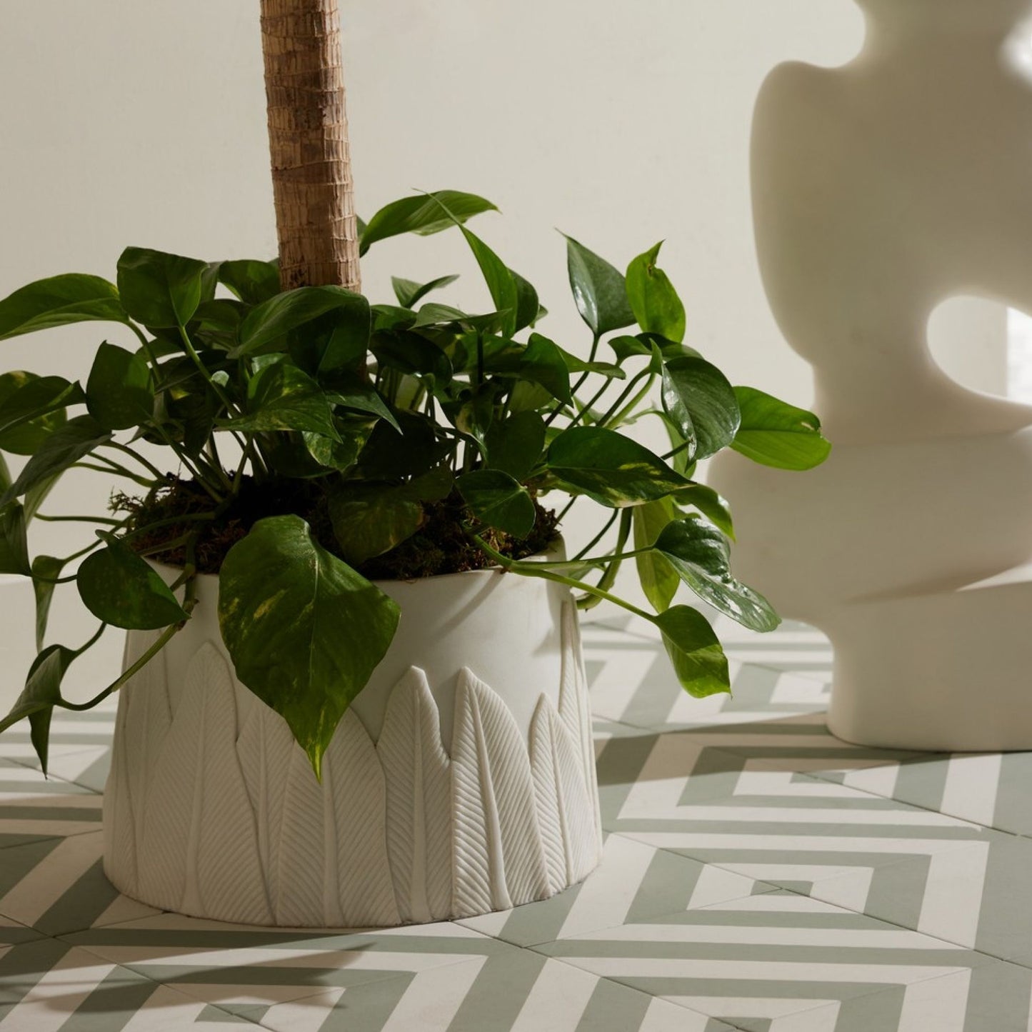 Feather Tall Centerpiece Ivory Ricestone