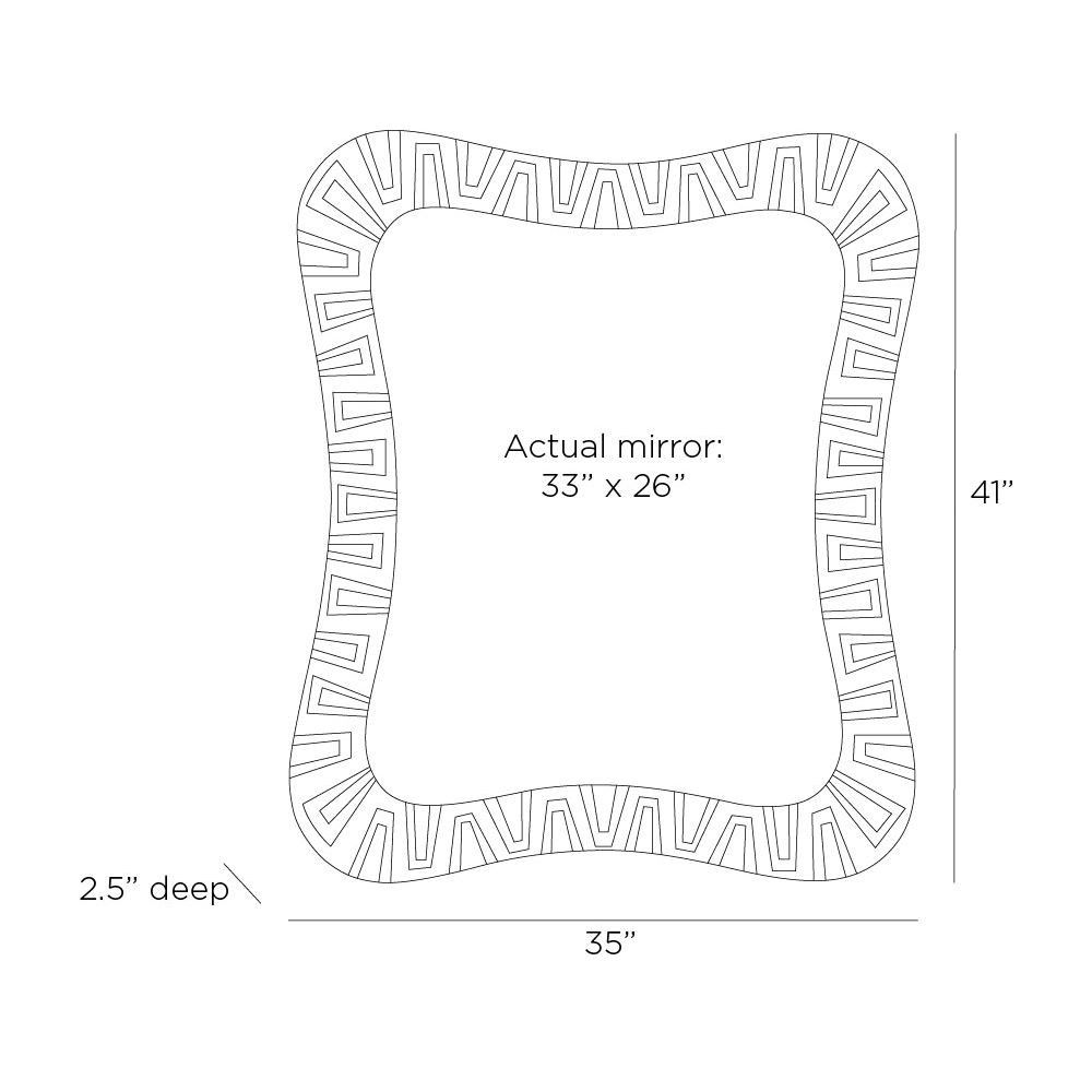 The Fuller Mirror Ivory by Arteriors Home features a grooved ricestone composite frame, adding texture and a rhythmic feel. Inspired by tribal designs, the mirror has a speckled finish that catches the eye.