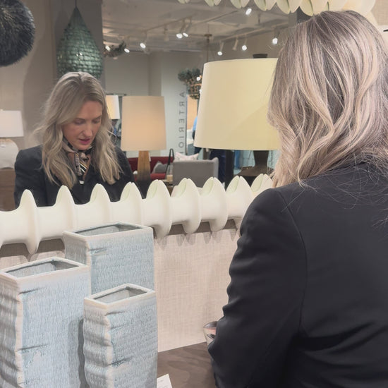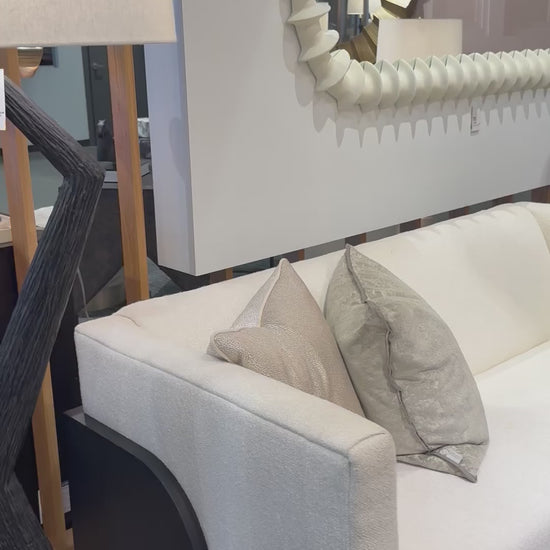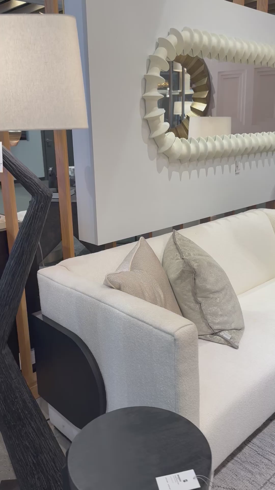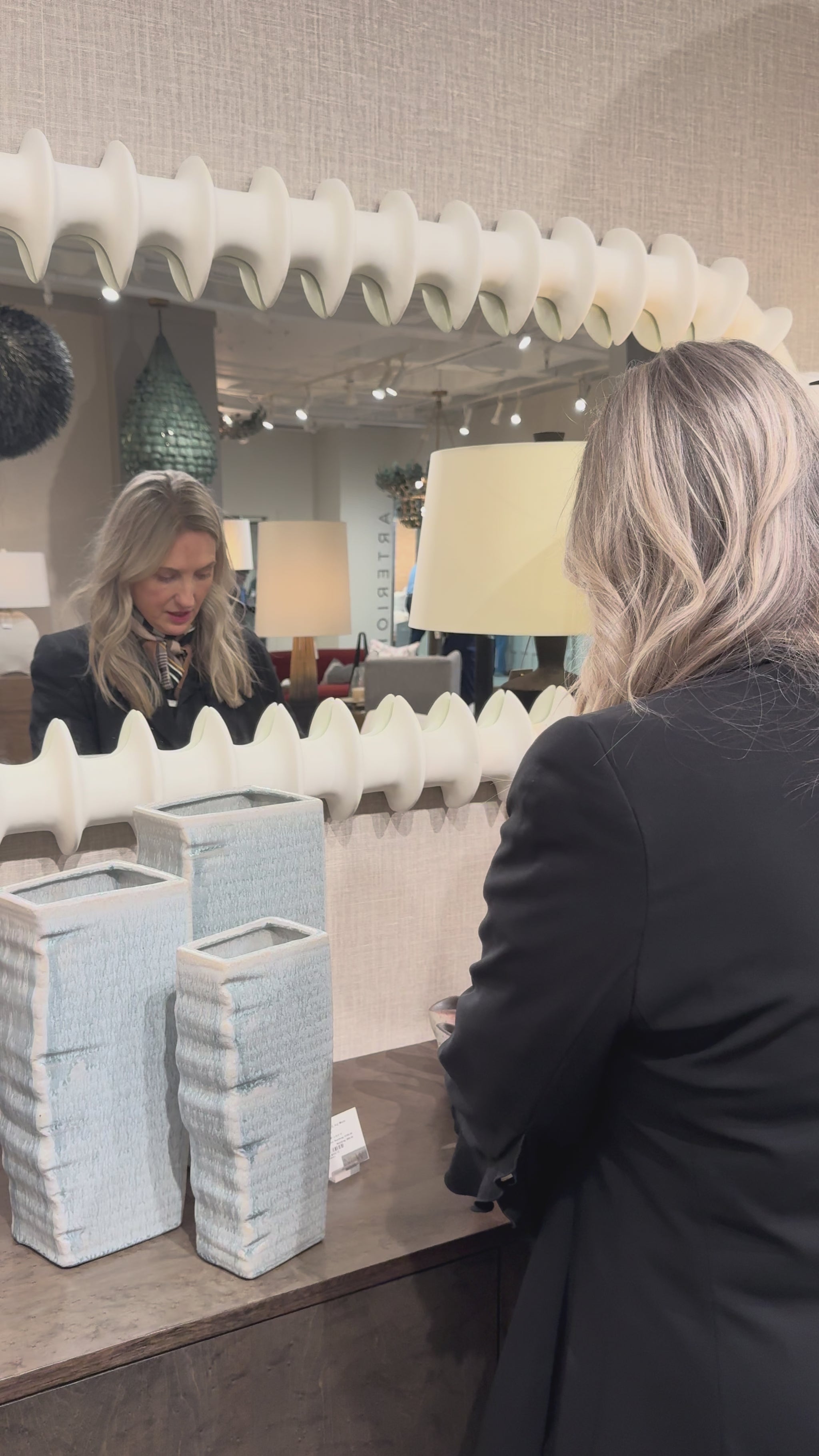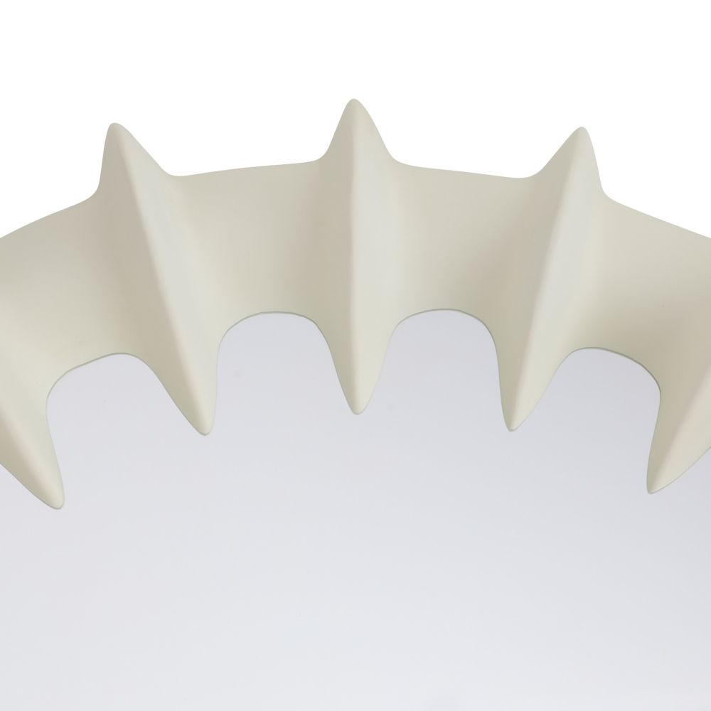 The Gilcrest Floor Mirror by Arteriors Home boasts a textured frame constructed of matte ivory resin, resembling the natural ridges of a spine. This unique finish adds depth and interest to any wall it adorns.