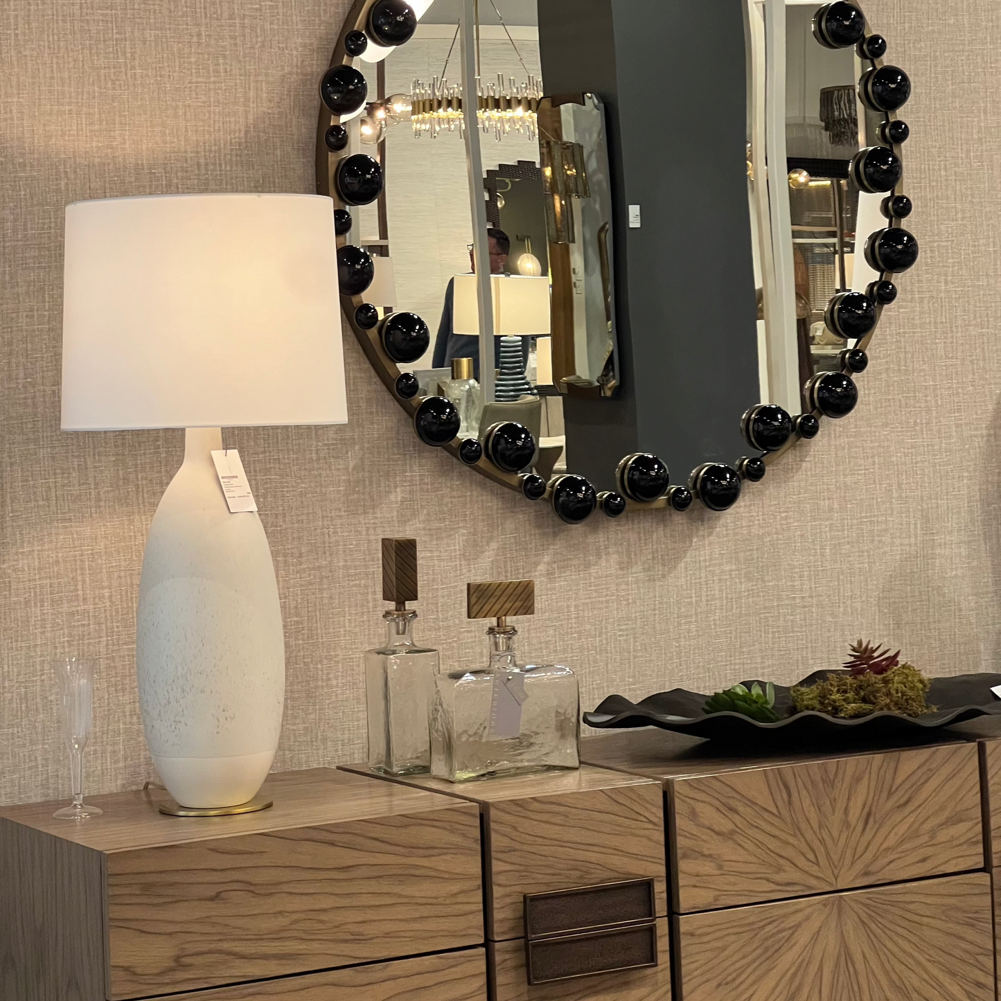 *Off-white microfiber drum shade with off-white cotton lining. Finish will vary.