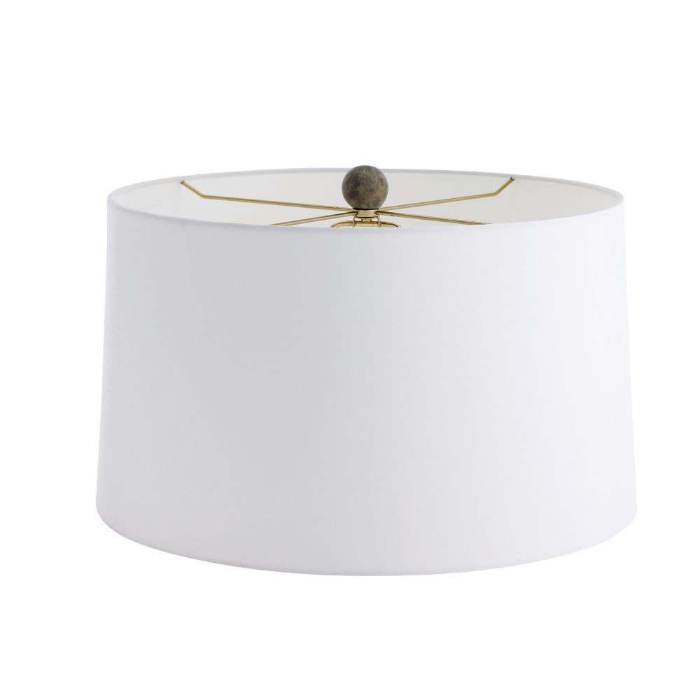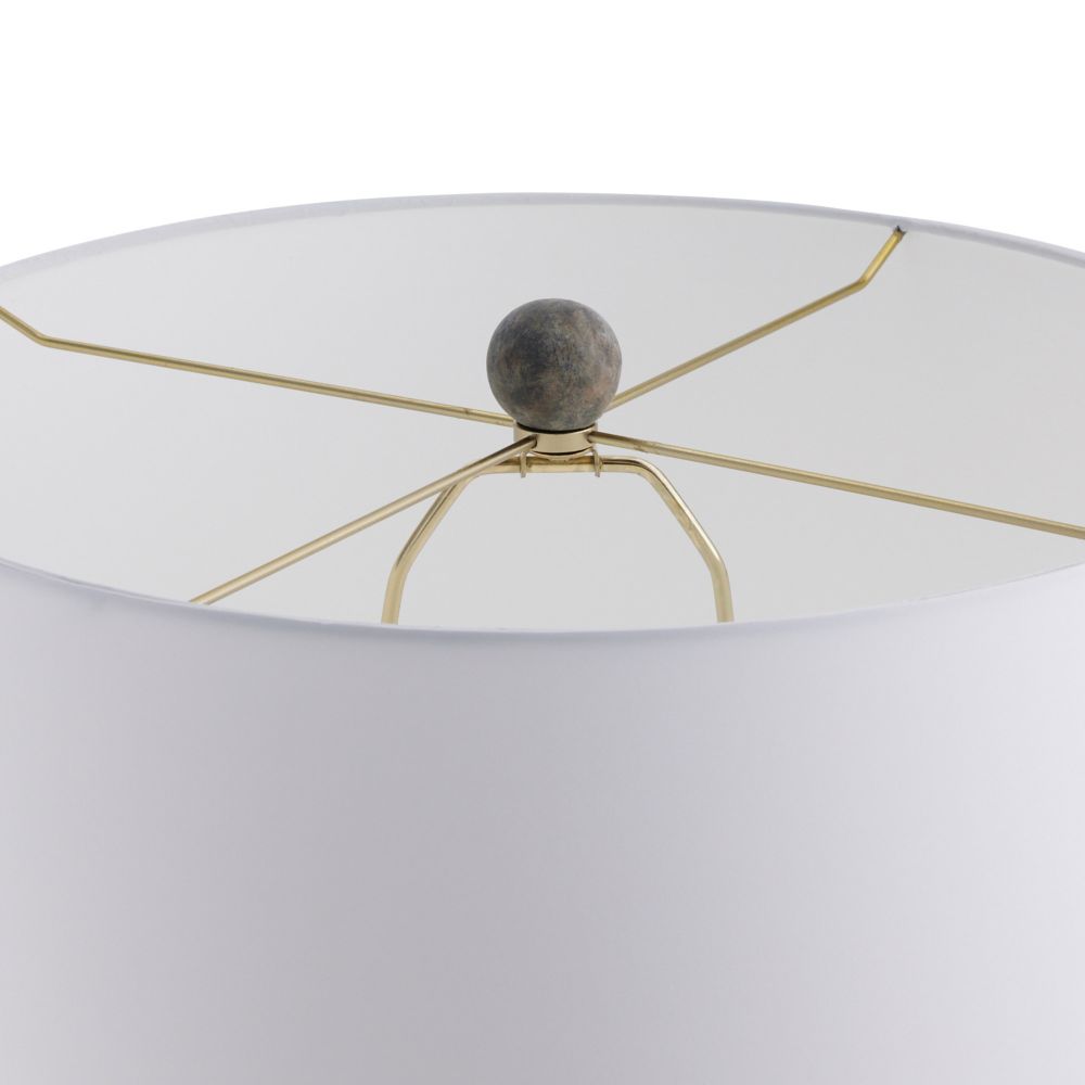 Experience the impressive size and distinctive texture of the Arteriors Home Granada Lamp Terracotta. Its off-white microfiber drum shade, made from premium cotton, pairs perfectly with the antique brass-plated steel hardware and coordinating finial, providing a sophisticated touch to any space.