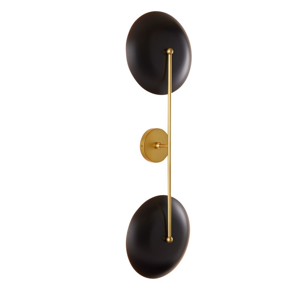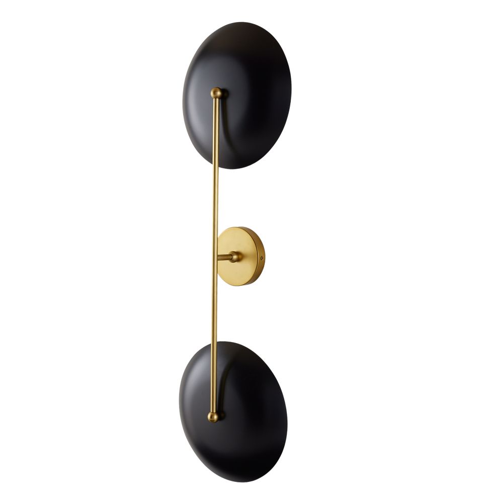The Griffith Sconce in Antique Brass from Arteriors Home balances a severe bronze finish with an elegant antique brass frame. The bronze plates face forward to diffuse the light and create a warm, even glow. Created with ada depth, it is an ideal option for corridor lighting.