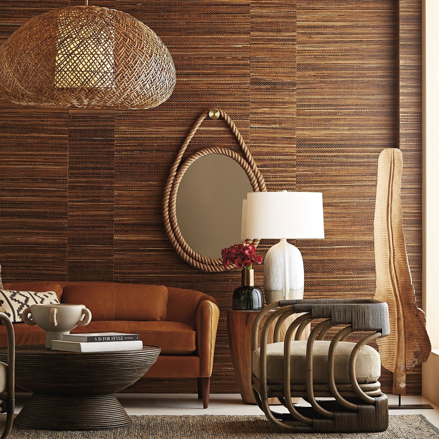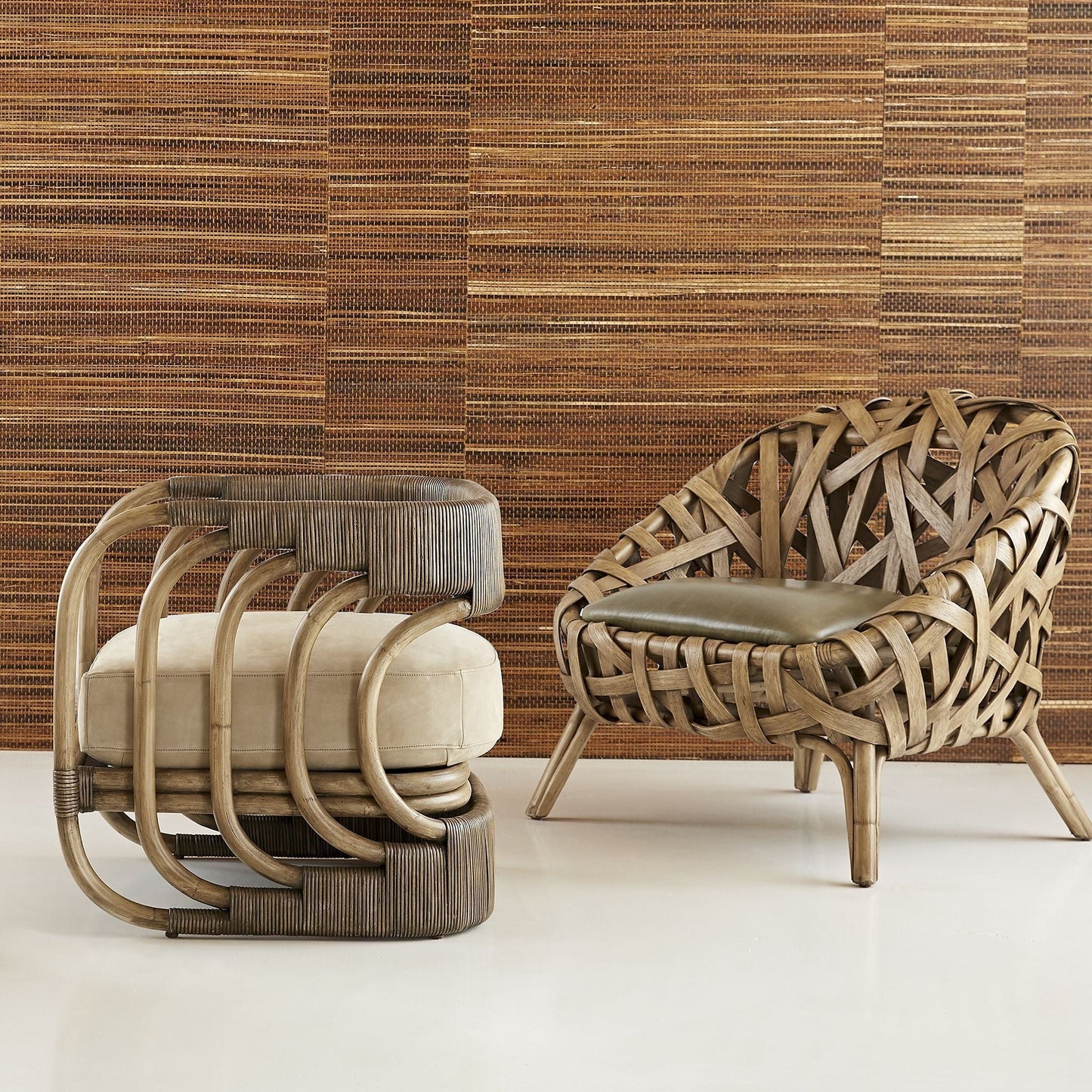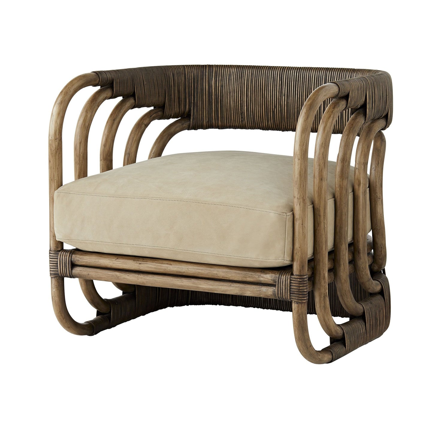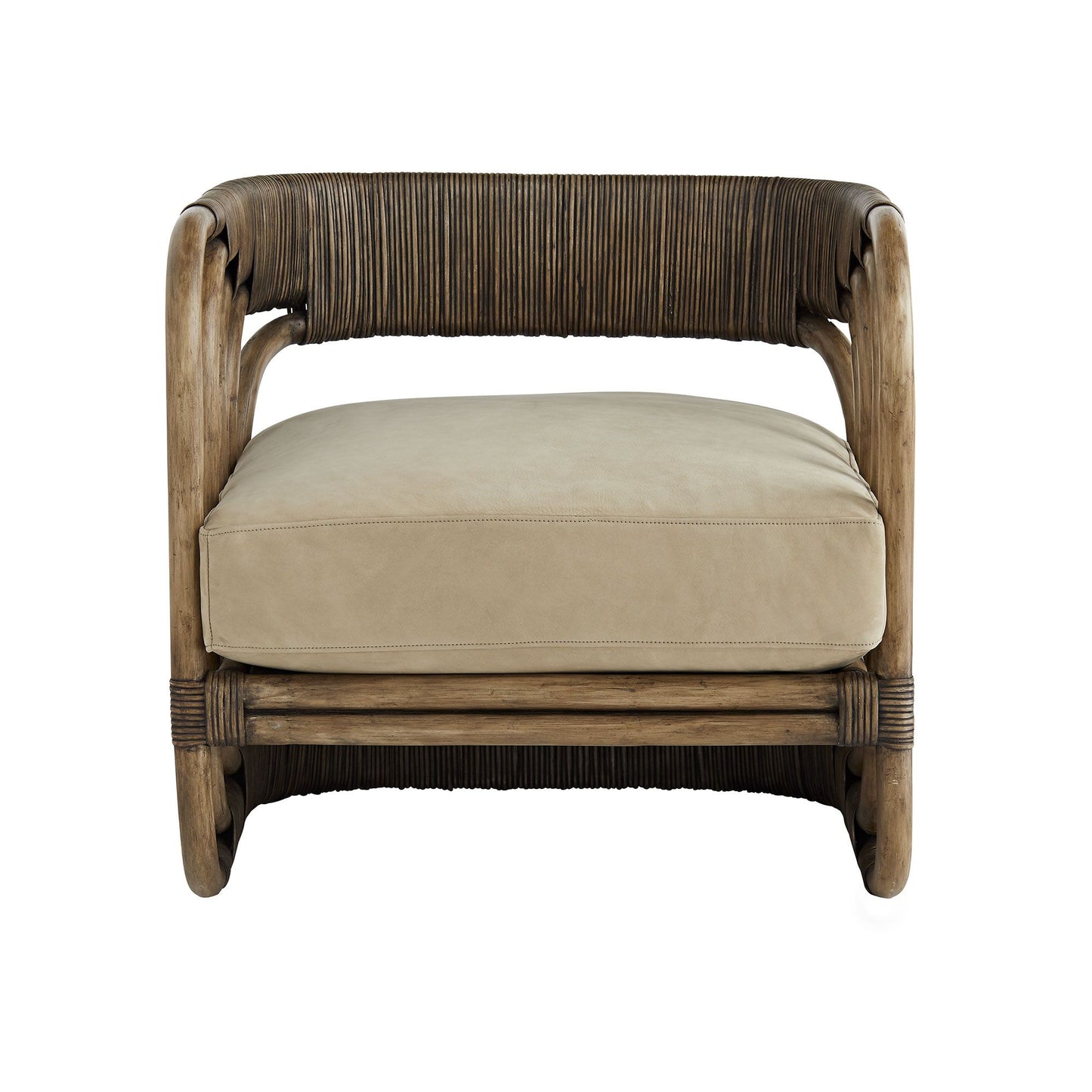 The elegant Hamza Chair is made with a sturdy gray rattan frame and a mink leather cushion, certified by Arteriors Home. Its natural look makes it an easy addition to any home decor.