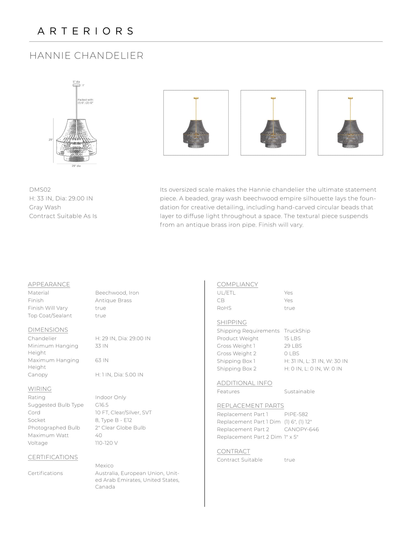Hannie Chandelier Gray Wash Beechwood - multiple options