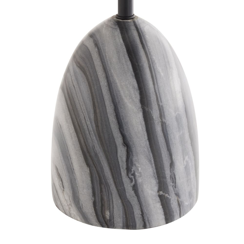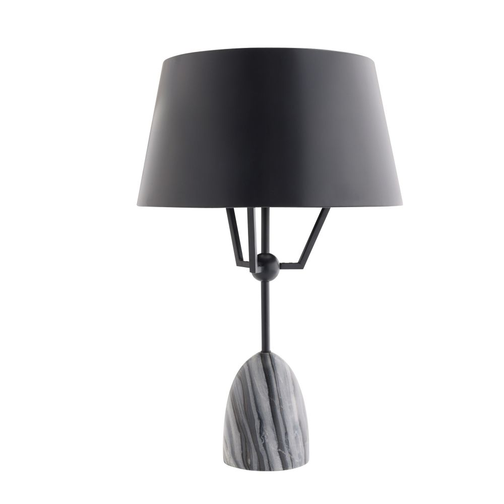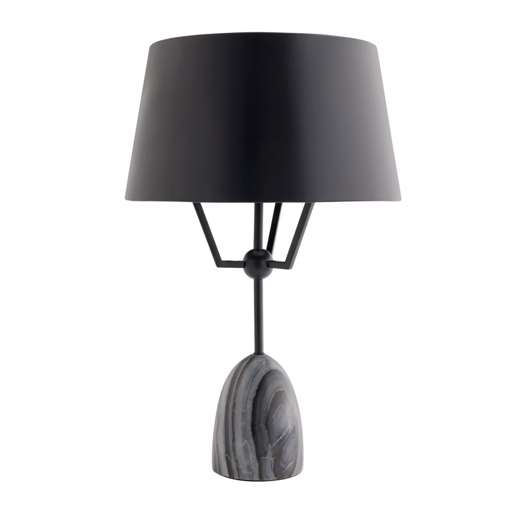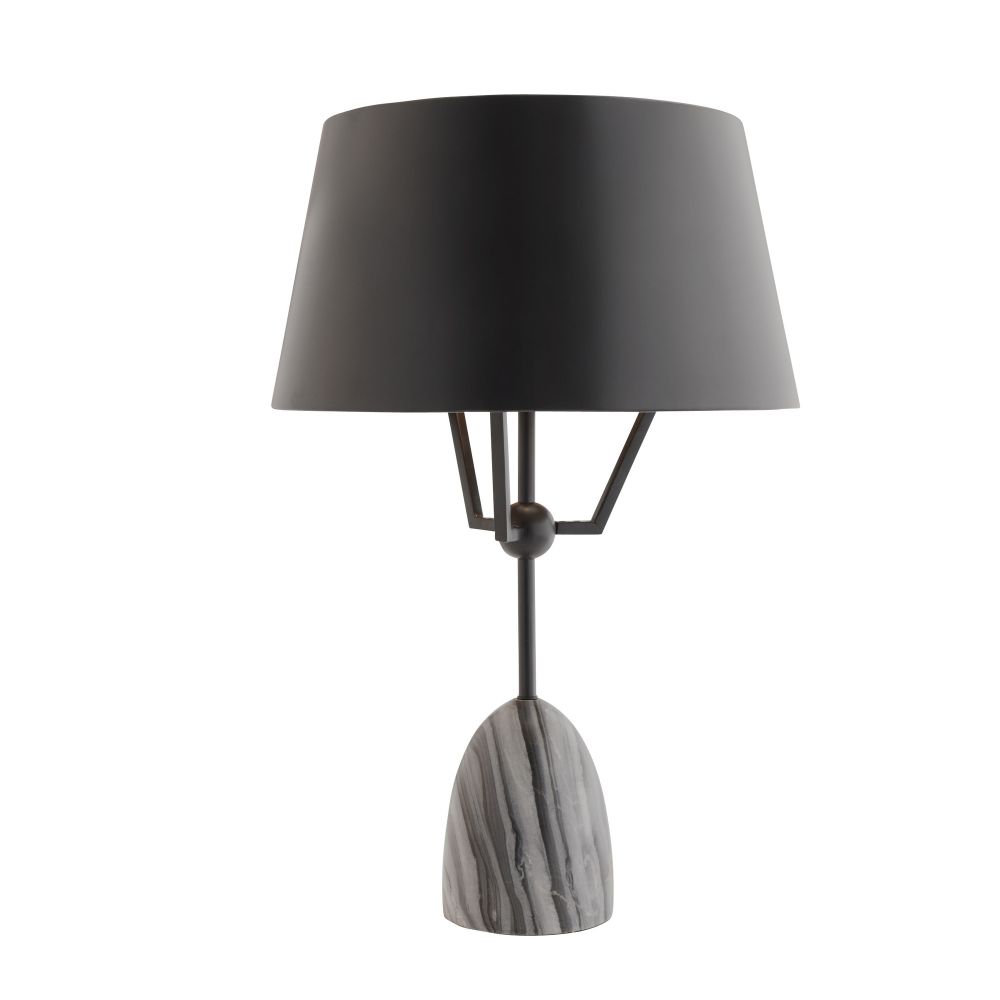 The Arteriors Home Hodgins Lamp in Galaxy Marble is constructed from bronze-plated iron, showcasing a whimsical design that enhances the minimalist metal shade, resulting in an exclusive and practical lighting solution. Matching finial.
