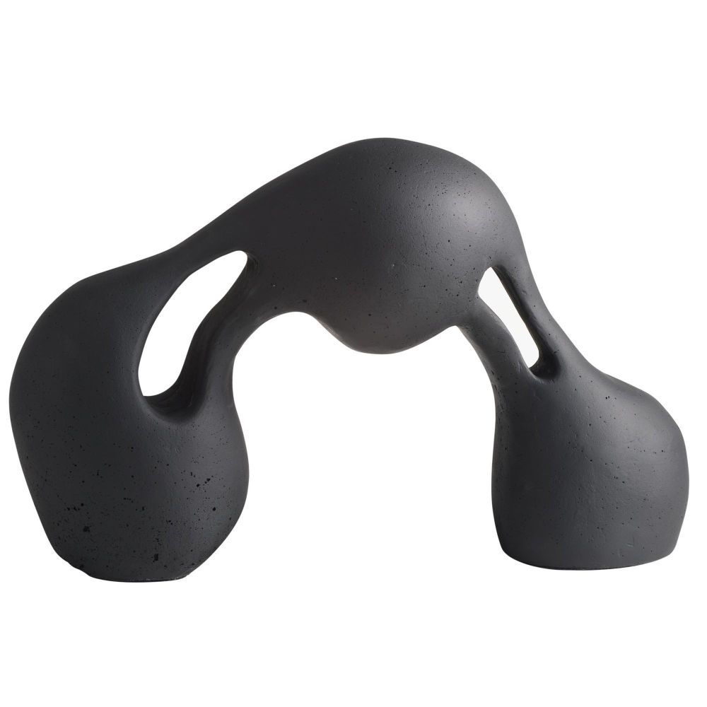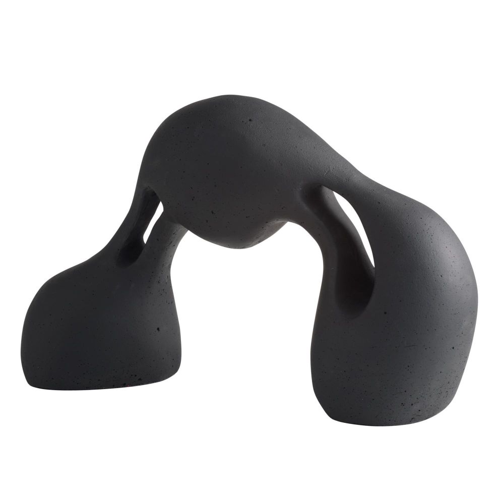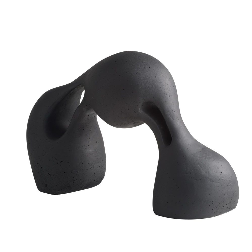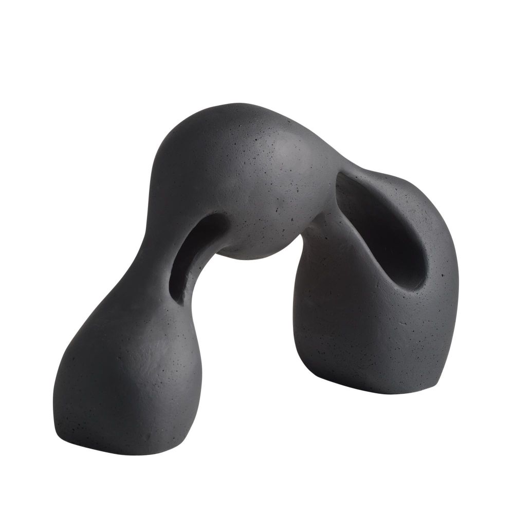 The Jabari Sculpture in Charcoal by Arteriors Home, crafted from charcoal ricestone composite, highlights the tension of stretched clay through striking cutouts that engage from every angle.