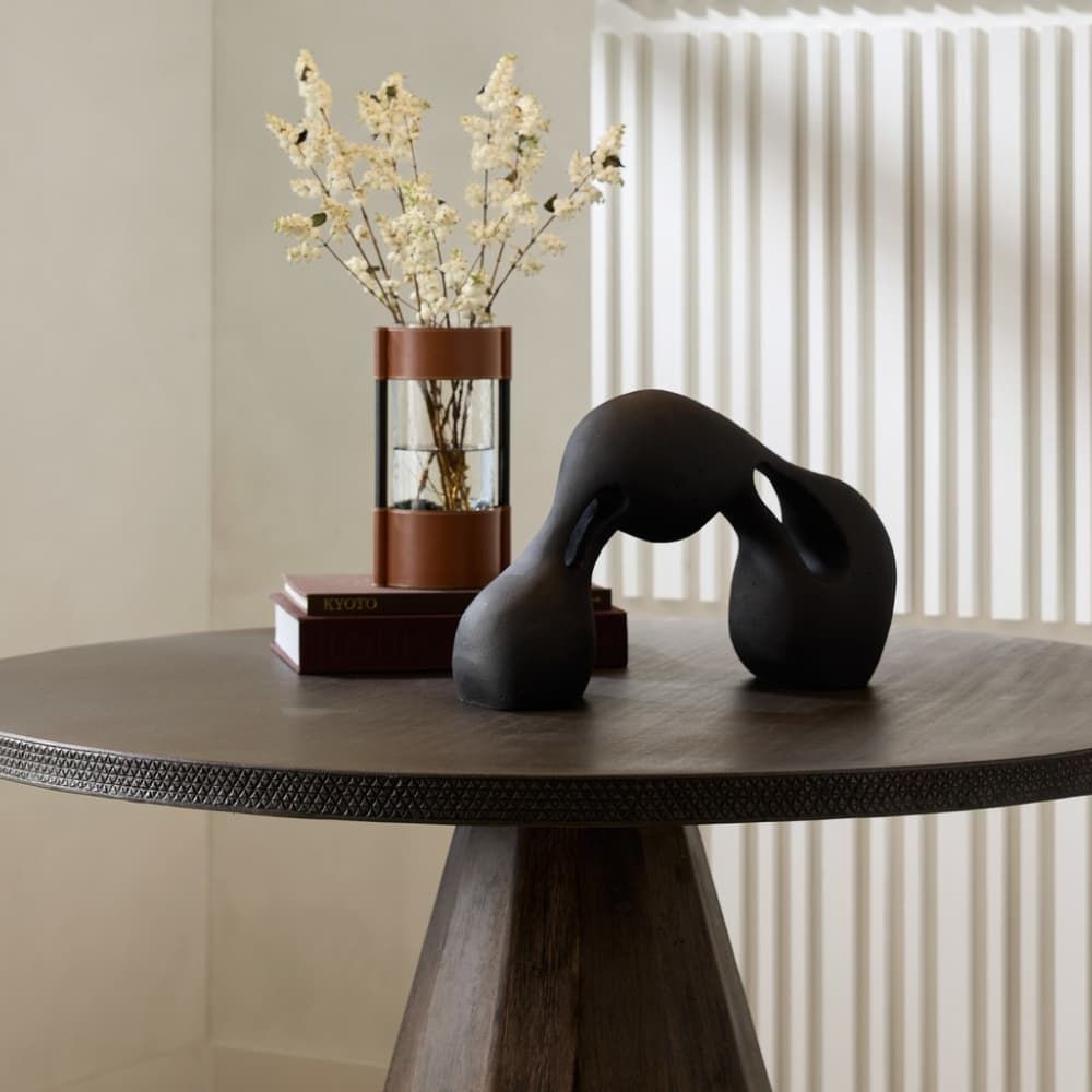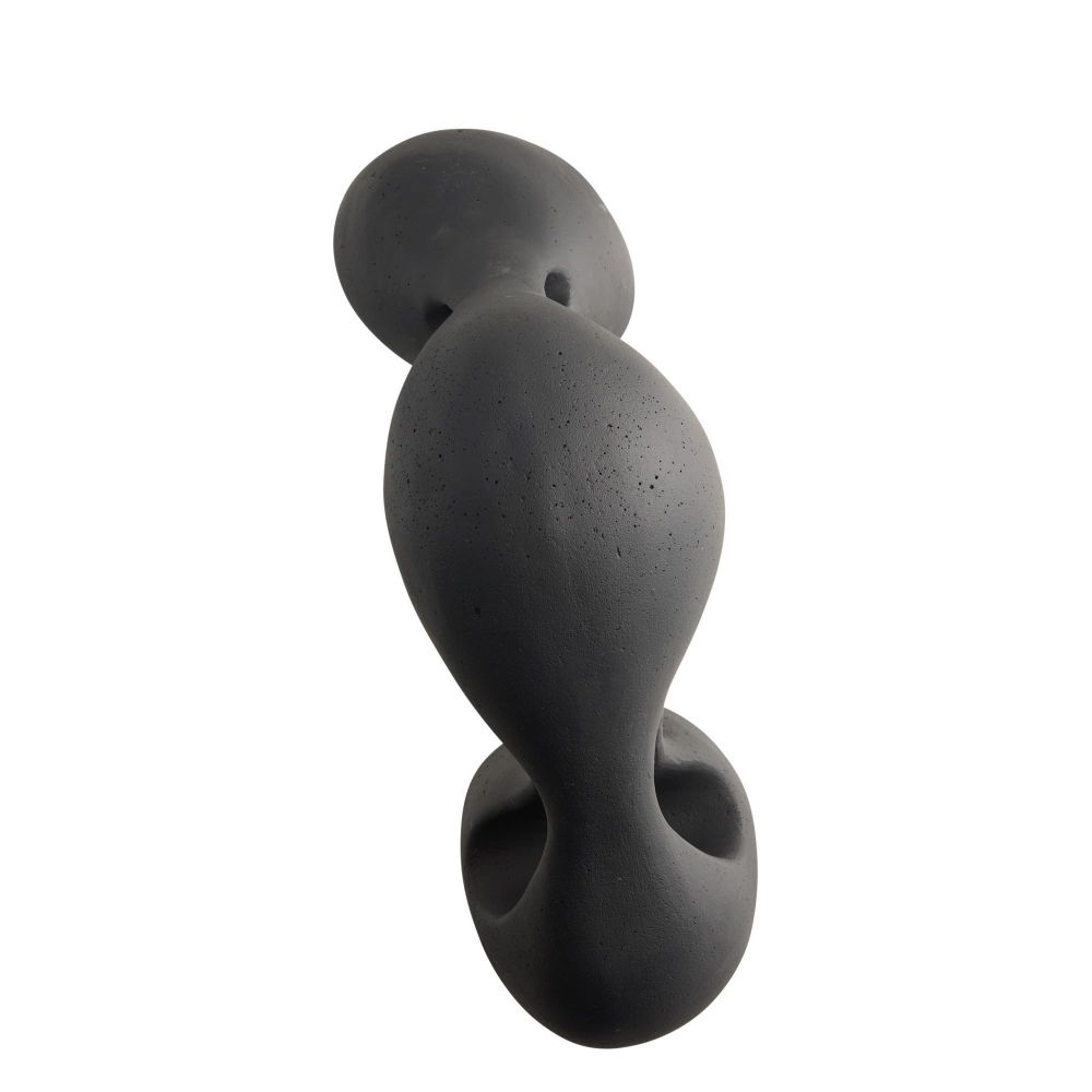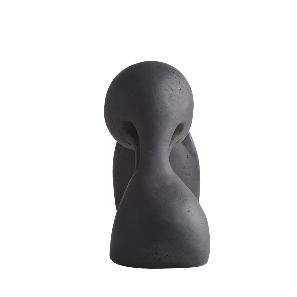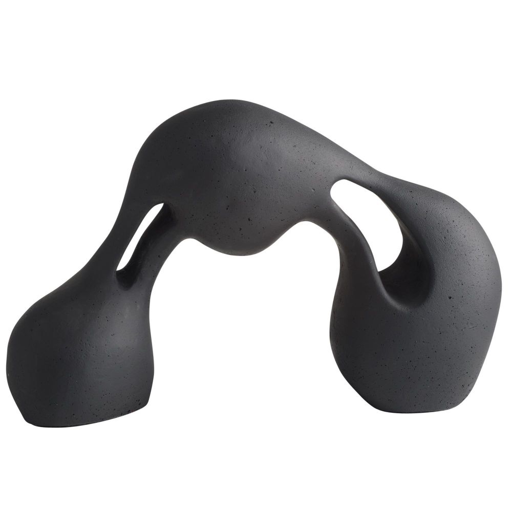 The Jabari Sculpture in Charcoal by Arteriors Home, crafted from charcoal ricestone composite, highlights the tension of stretched clay through striking cutouts that engage from every angle.
