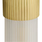 The Jayce Sconce in Antique Brass by Arteriors Home reinterprets the classic pendant with an antique brass-plated steel frame and a chain-suspended frosted glass shade. Its chattered brass accents echo the glass’s ribbed texture, creating a striking look that gains impact when grouped.