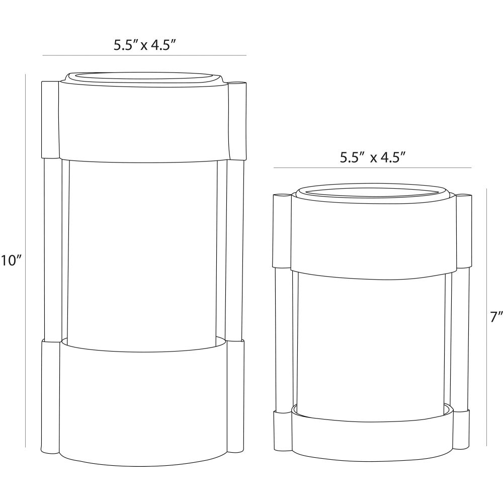 Set of 2: Large: 10" High x 5.5" Wide x 4.5" Deep; Small: 7" High x 5.5" Wide x 4.5" Deep