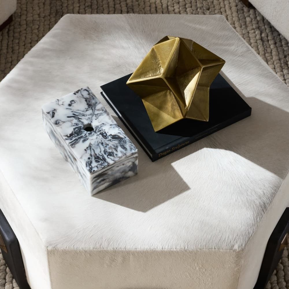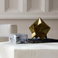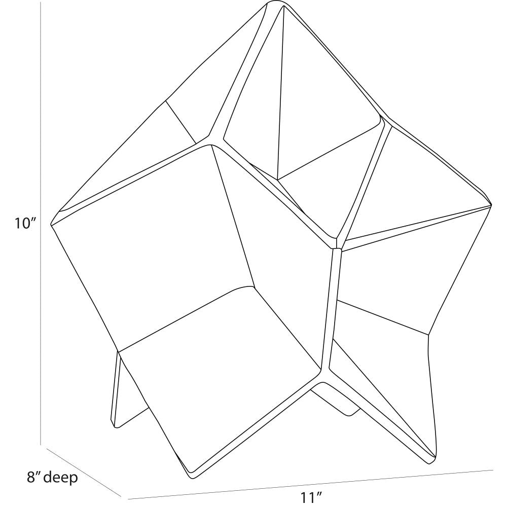 Arteriors Home's Kendrick Sculpture reinterprets origami star forms in substantial antique brass iron. This expertly crafted decorative piece makes a sophisticated statement on bookcases or coffee tables while felt dots protect surfaces.