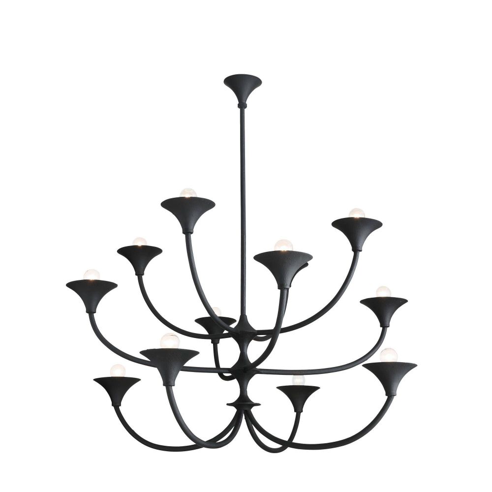Inspired by organic forms, the Larkin Chandelier in Black Iron by Arteriors Home features twelve black gesso iron arms that cast light throughout a room while serving as a sculptural focal point. Its dynamic, mobile-like design makes it an exceptional choice for grand entryways and spacious living areas.