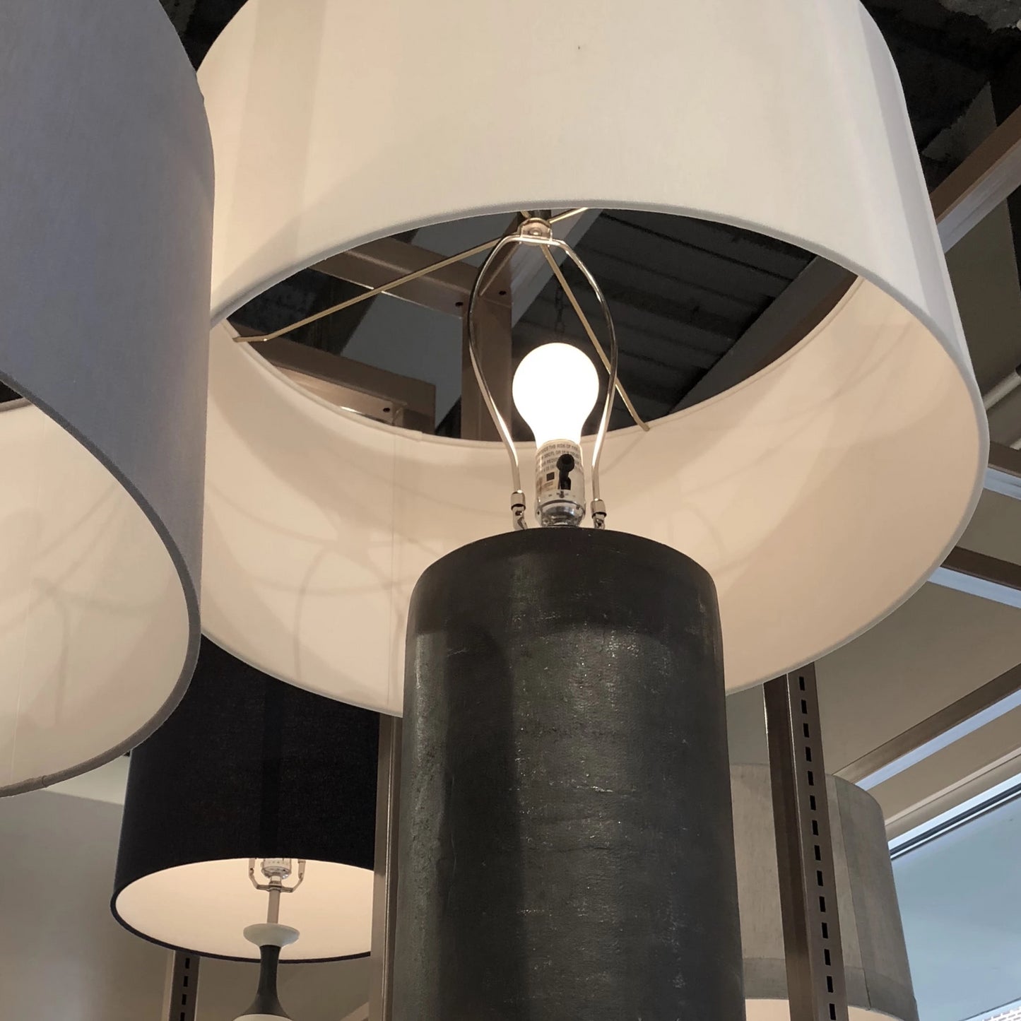 The Prague Lamp in Blackened Bronze from Arteriors Home is a beautifully crafted aluminum light fixture. The dark inky hue of this table lamp results in a matte graphite look.
