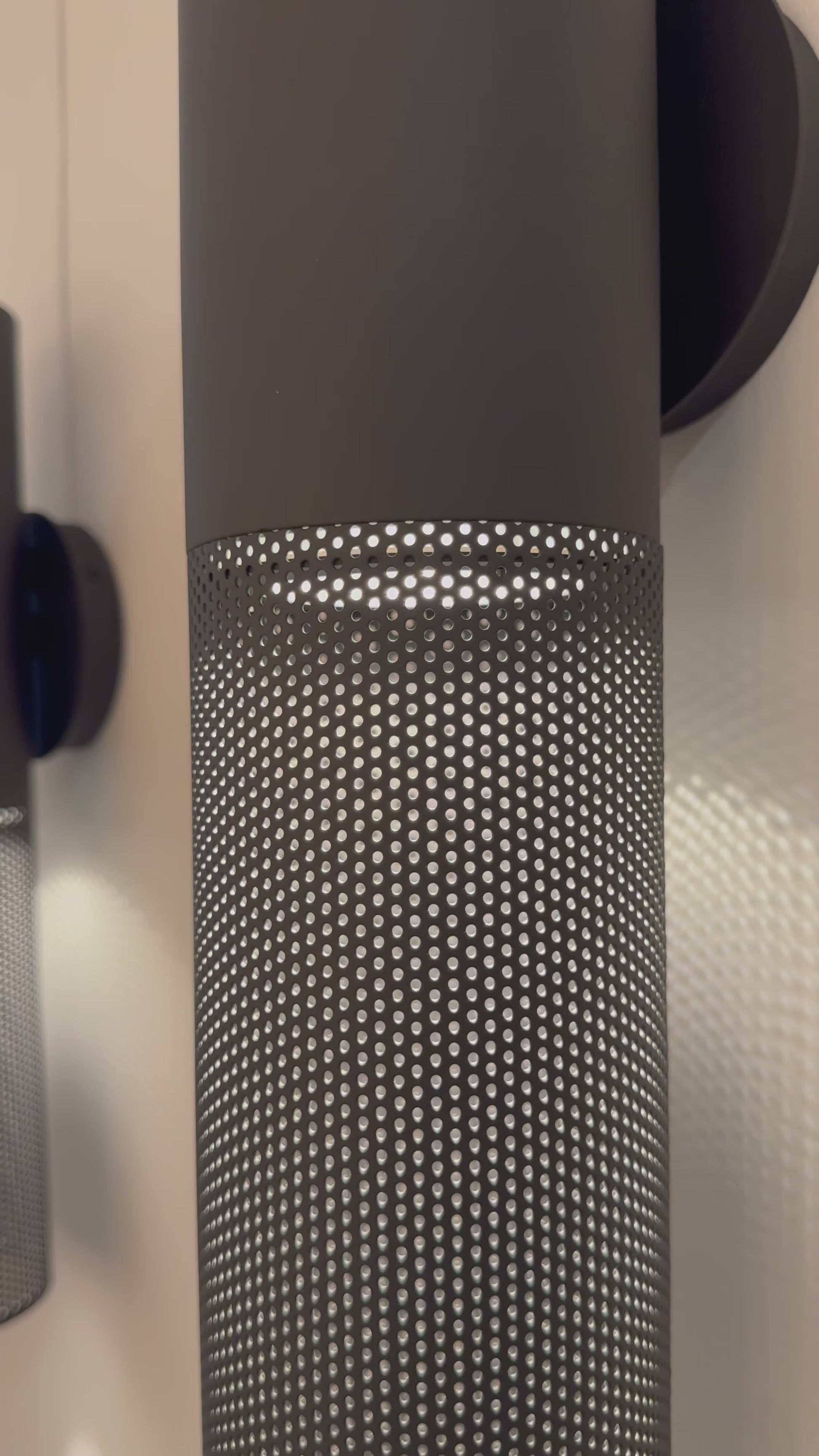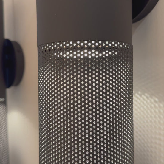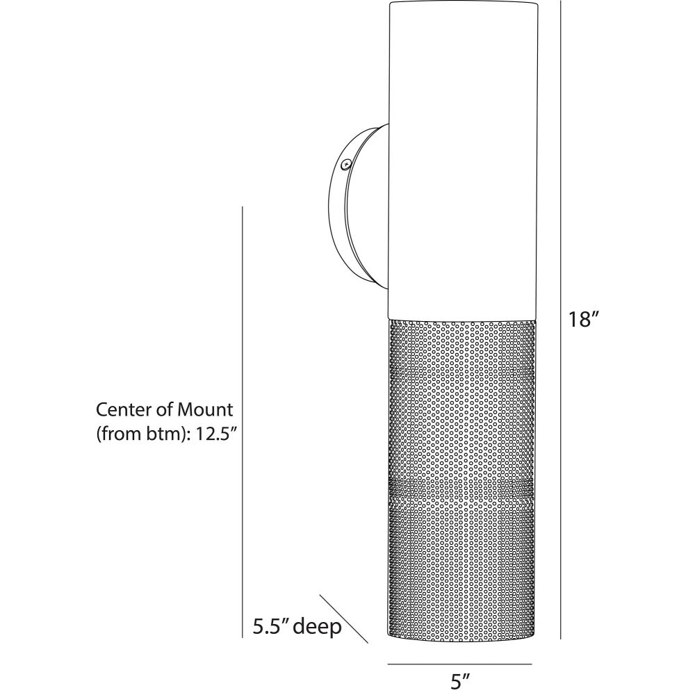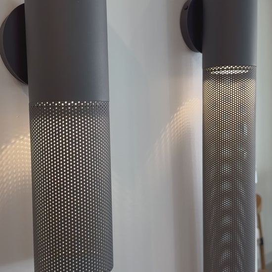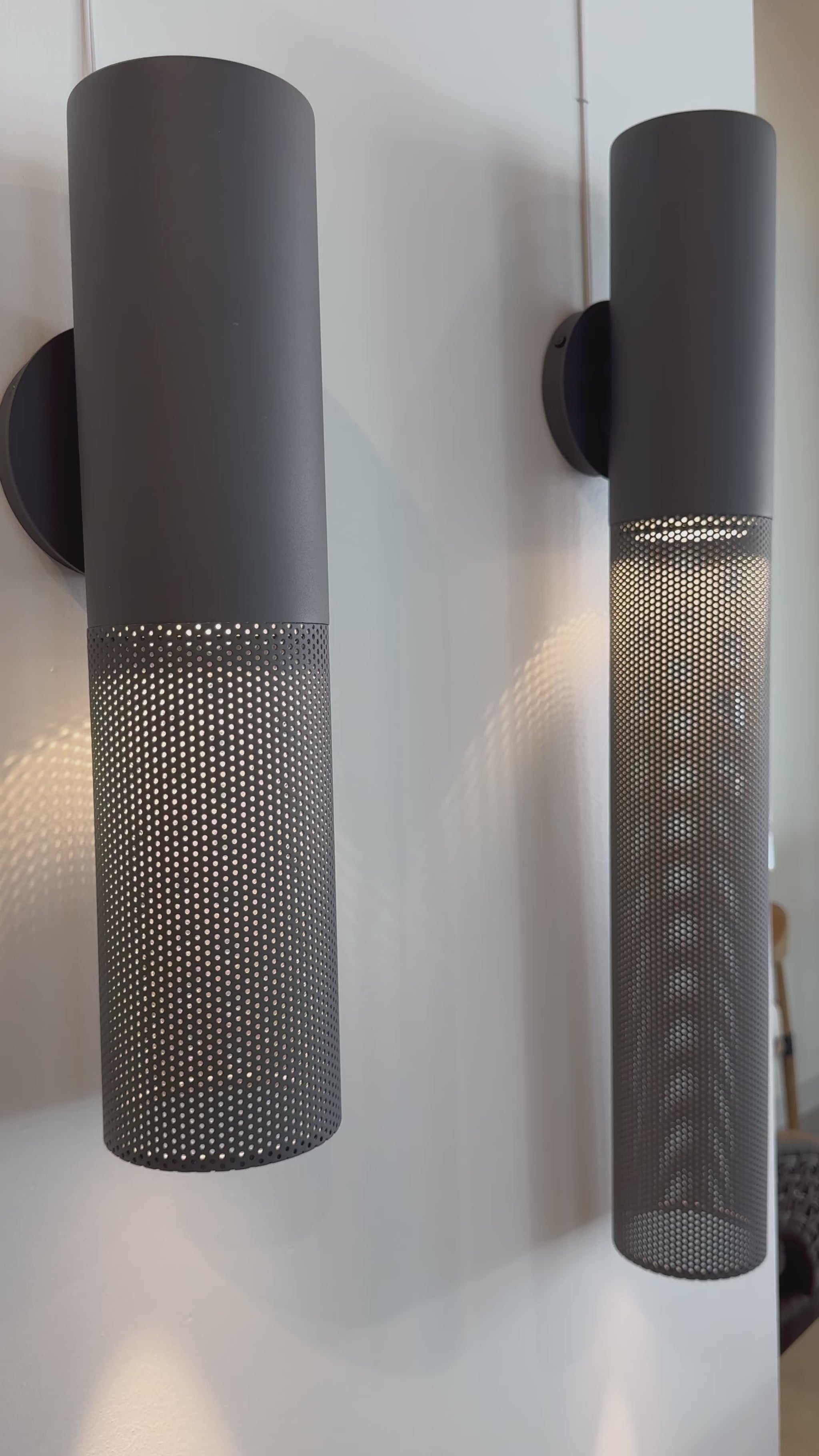 The Punch Outdoor Sconce in Matte Black by Arteriors Home is a subtle, linear option for exterior spaces. A perfect pairing of solid and perforated marine grade matte black steel cylinders on a rounded mounting plate, Punch casts a diffuse downward glow. A protective coating helps withstand the elements.