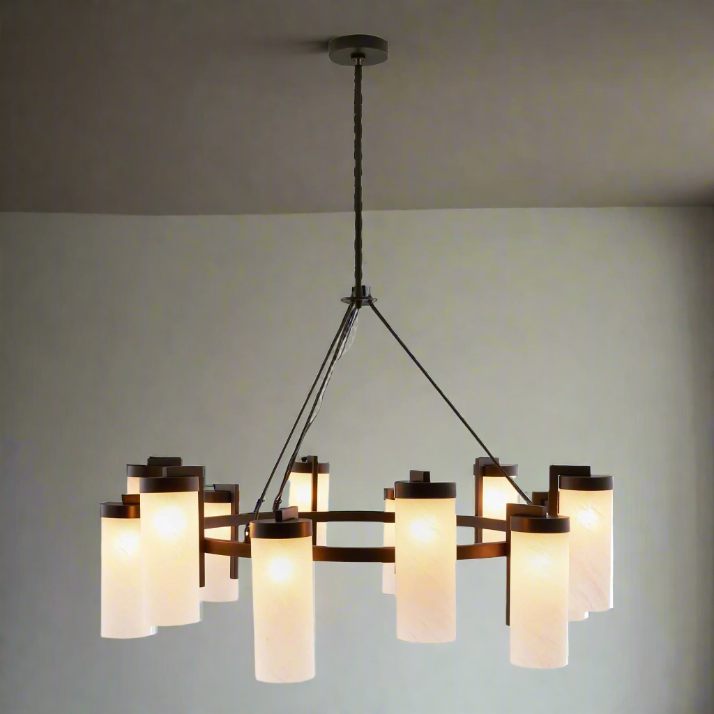 Ryder Chandelier English Bronze and Matte Swirl Glass