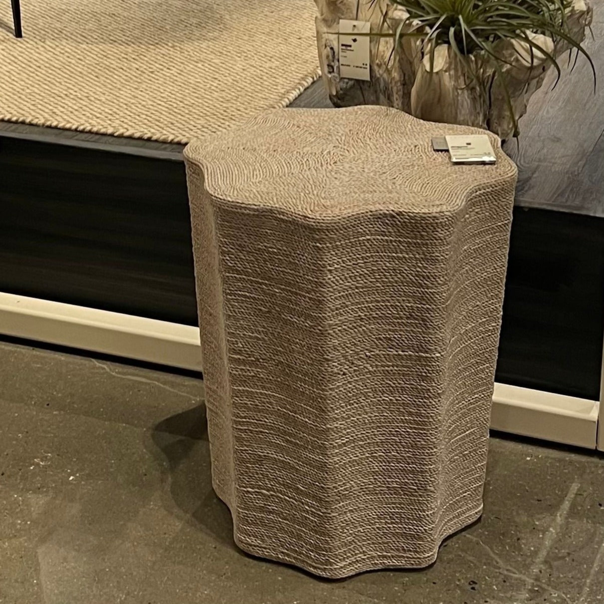The Arteriors Home Tucson Accent Table in Bleached Natural Abaca bestows a layer of artisanal texture to your space. The natural beauty of bleached natural abaca is on full display wrapping around the entirety of this amorphous accent piece.