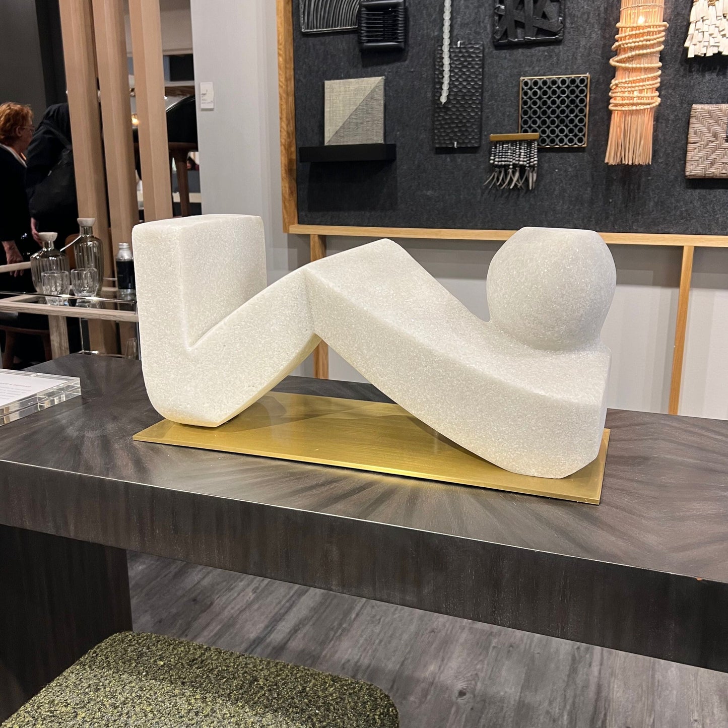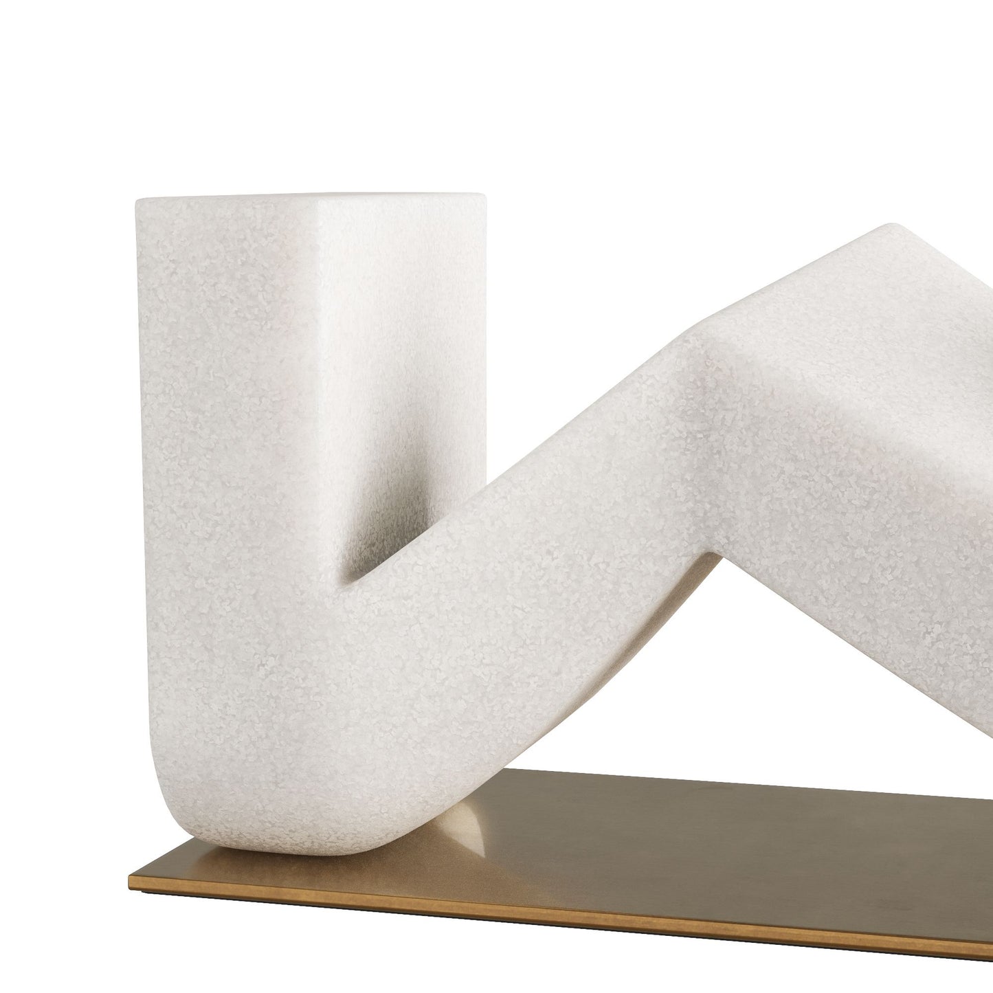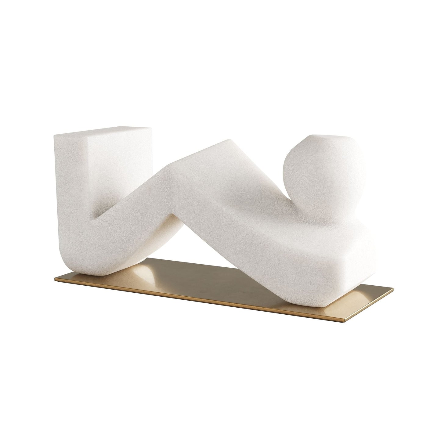 The Zane Sculpture in Ivory from Arteriors Home features flowing lines of a reclining figure embodied in an abstract form of ivory ricestone composite. Reminiscent of modernist sculptures, it is mounted on a slim steel base finished in antique brass.