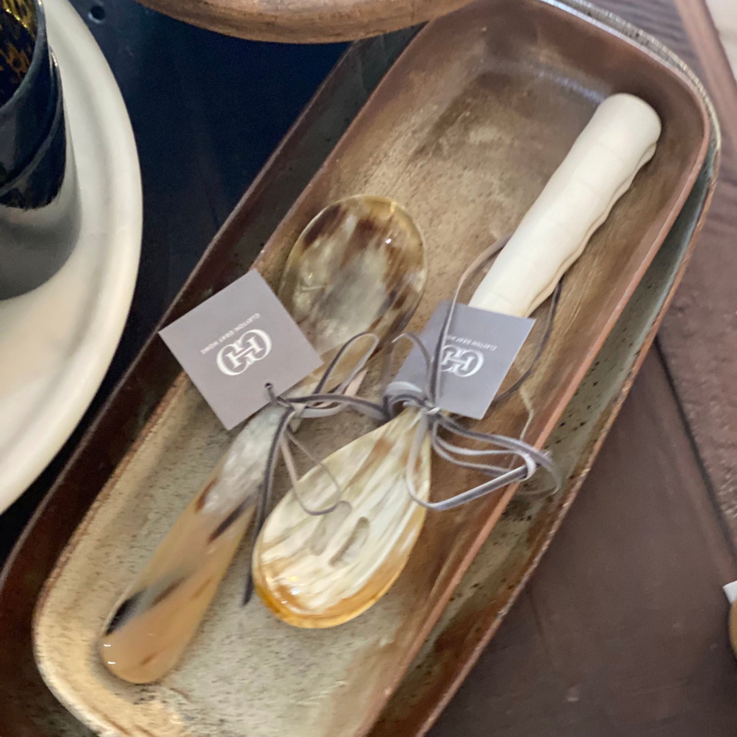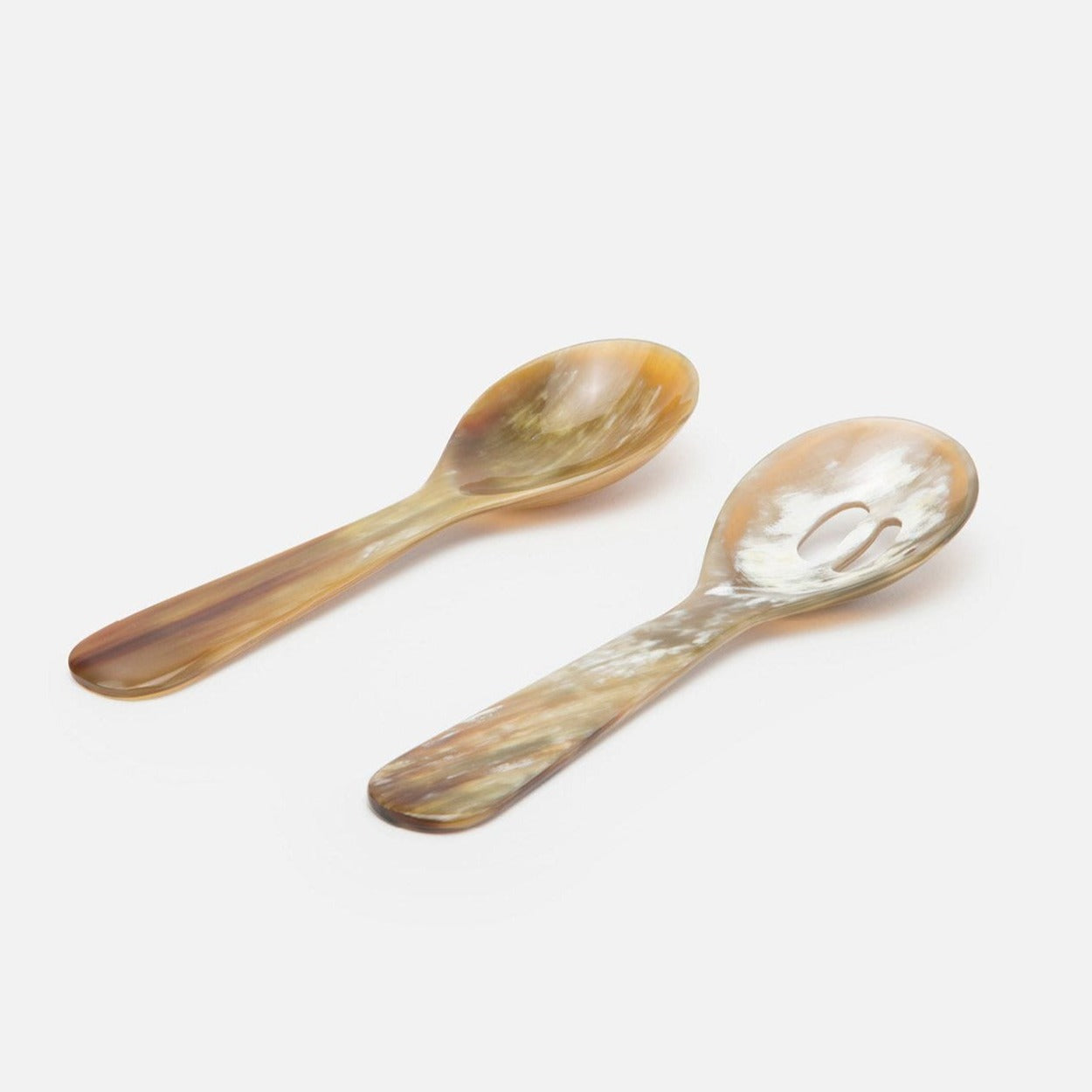 Featuring one-of-a-kind hues of natural horn, the Gala Natural Serving Set from Blue Pheasant will make your serving spoons shine. These elegant serving spoons are shaped entirely from natural materials.