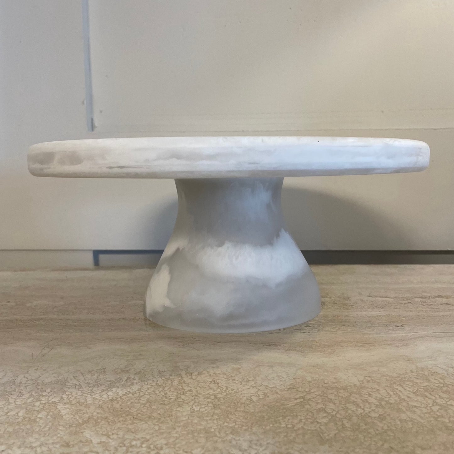 With its handcrafted, two-toned resin swirls, the Hugo White Swirled Resin Cake Stand from Blue Pheasant are the perfect artful vessels for the most indulgent desserts.