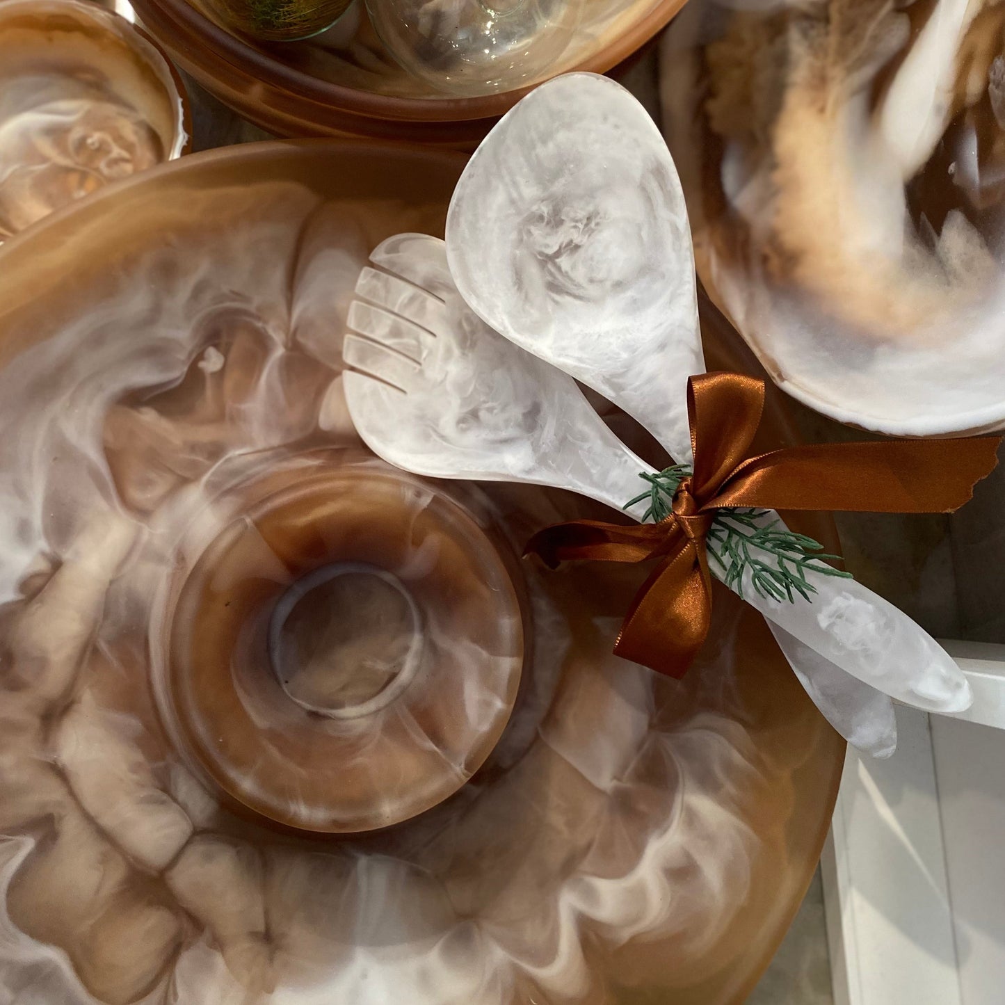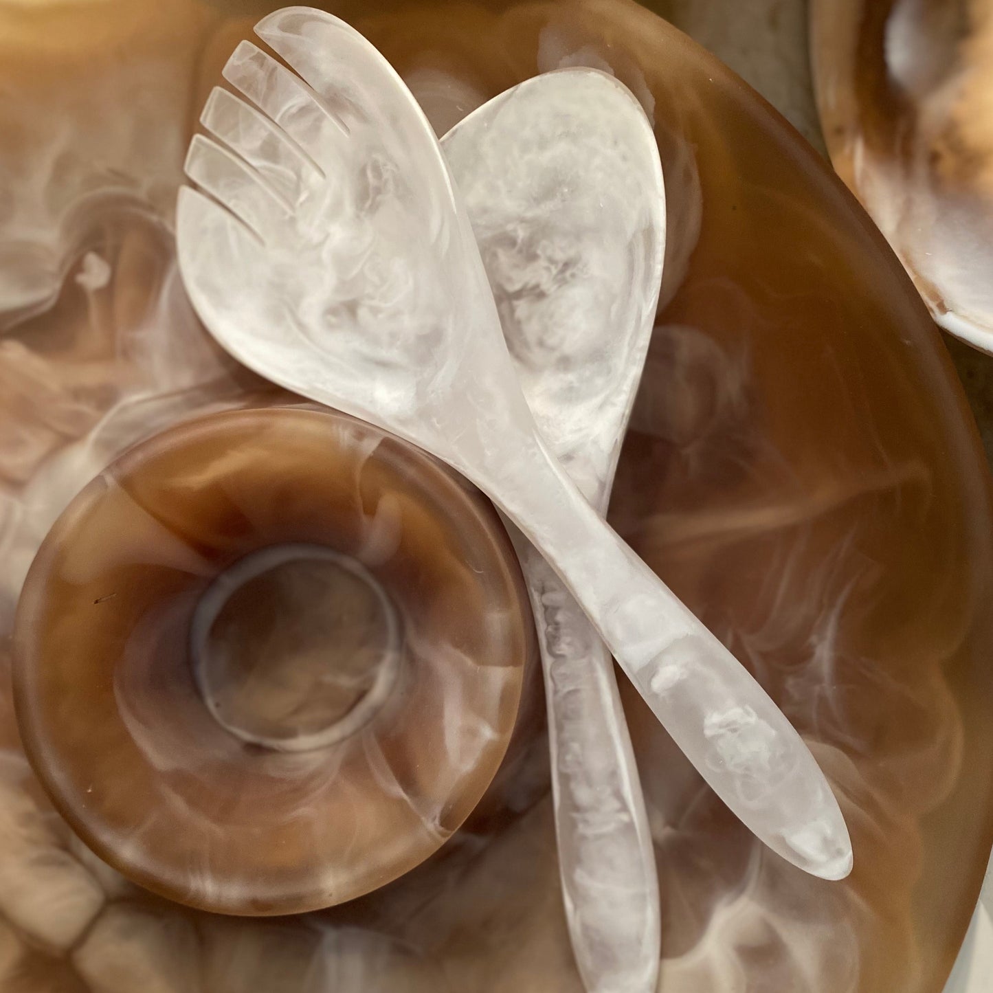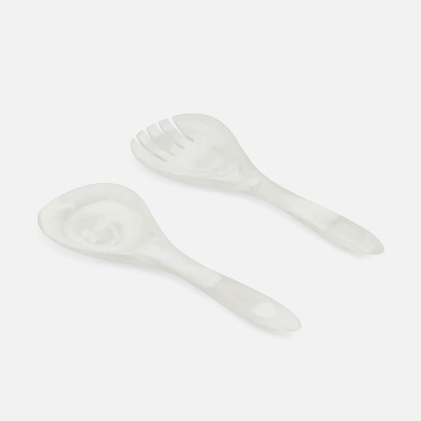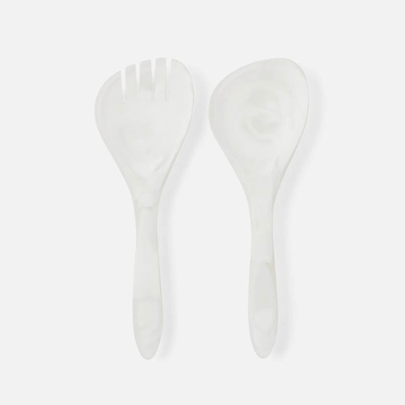 Give your table a spot of vivid color. The Laney White Swirled 2 Piece Serving Set from Blue Pheasant features a stark white on white fork and spoon that has both contrast and a smooth finish.
