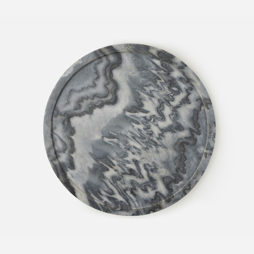 Carved from solid gray marble, the Portia Gray Marble Lazy Susan from Blue Pheasant was inspired by classical architecture. Clean lines, simple geometrics, and pure practicality make this the perfect piece.