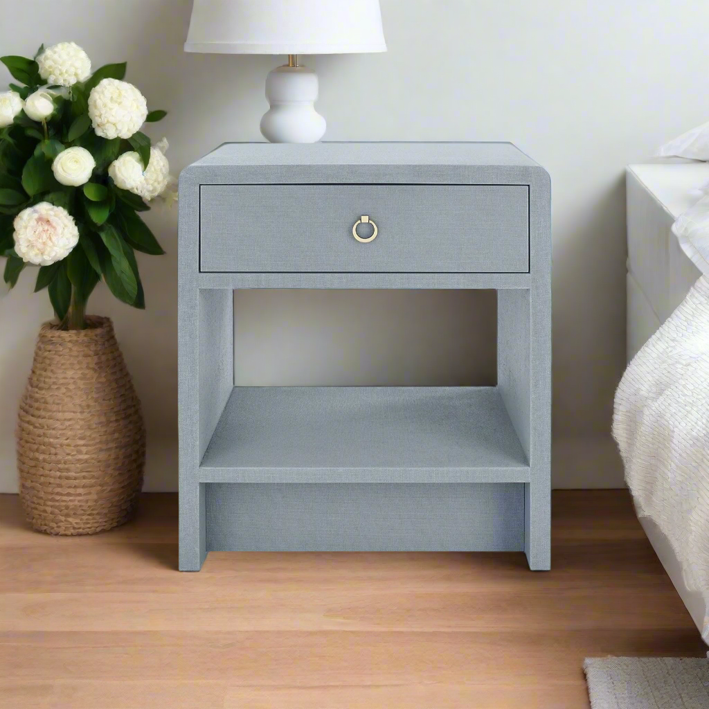 Benjamin 1 Drawer Side Table Winter Gray Lacquered Linen