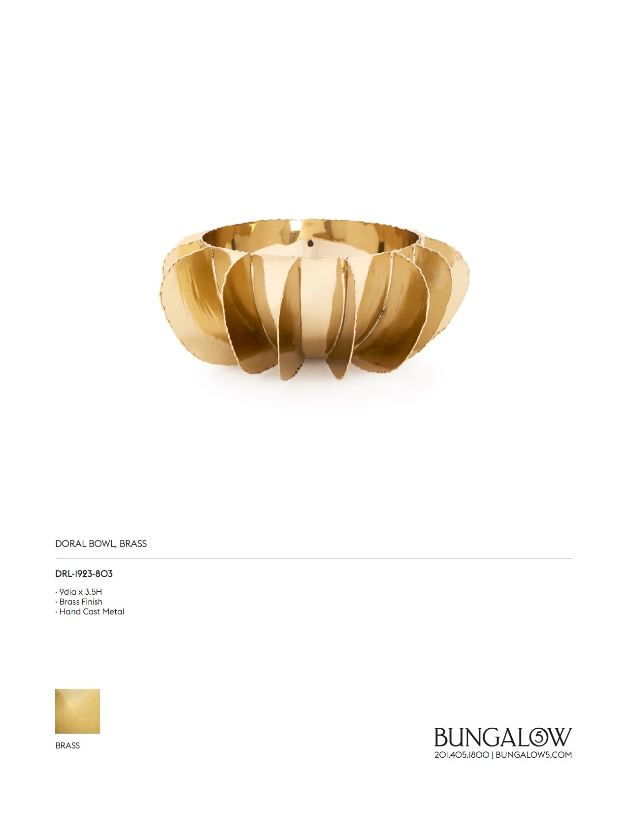 =Expertly crafted by talented artisans, the Doral Bowl from Villa & House exudes charm and elegance with a hand-cut, hand-hammered design and brass finish. A perfect addition to any tabletop, desktop, or shelf, pair with the Doral Vase for a complete look.