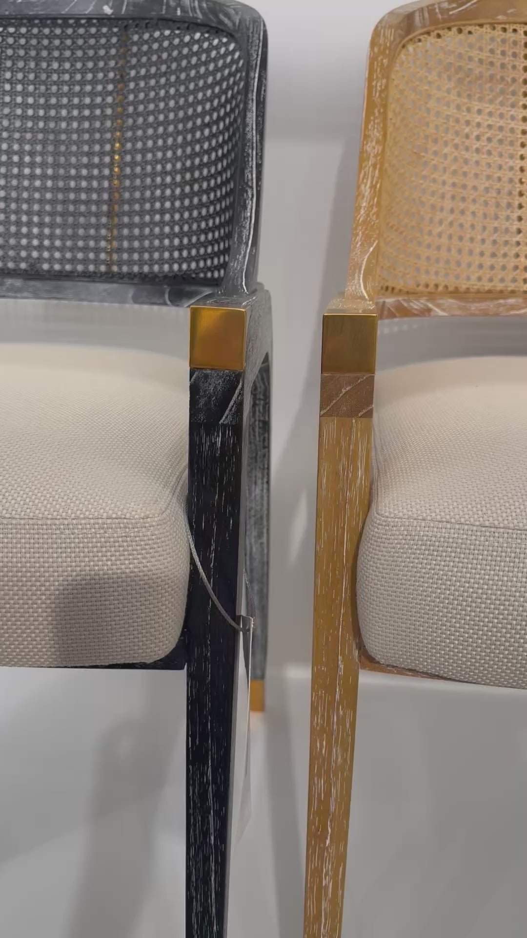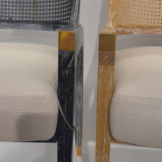 Crafted from sustainably harvested Cape Lilac Mahogany, the Edward Chair in Natural fuses classical design elements with a modern twist. A hand-woven rattan back and hand-cast bronze sabots and arm caps add a touch of elegance.