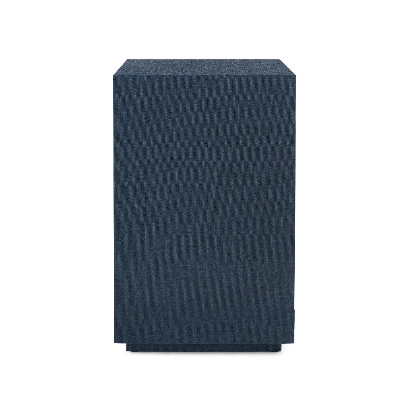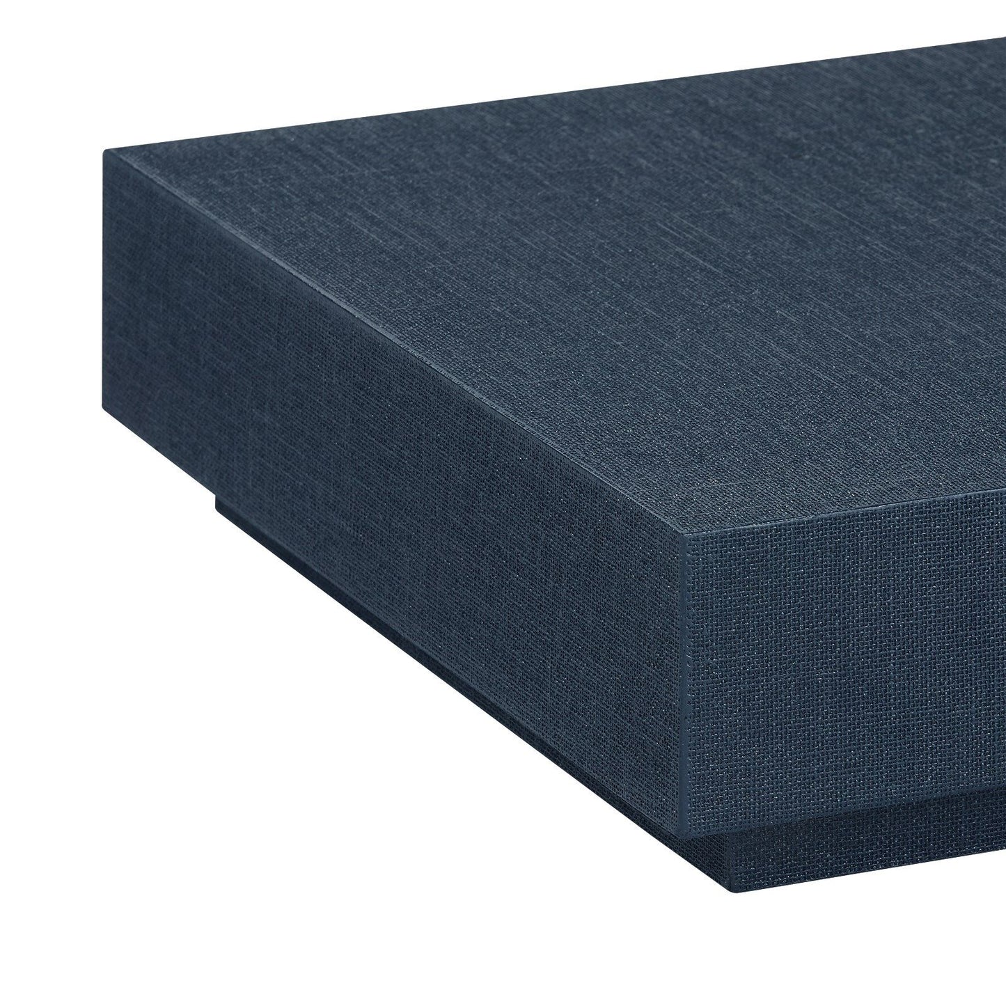 Crafted from real lacquered linen, the Essential Side Table in Blue Steel boasts expert craftsmanship with precise angles on three planes. Its unique modernist design and versatility make it a perfect addition to any great room, home office, or bedroom.