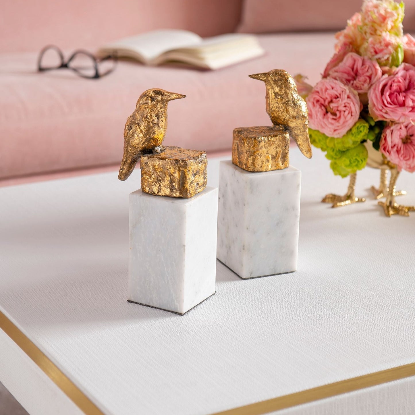 Effortlessly add a touch of unexpected elegance to your home with Villa & House's Finch Statue Pair. These gilded birds, with their textured impasto details, offer a modern and stylish design to any bookshelf, desktop, or coffee table.