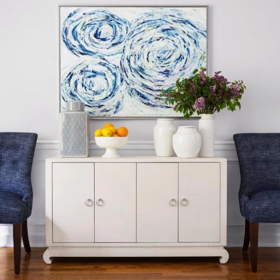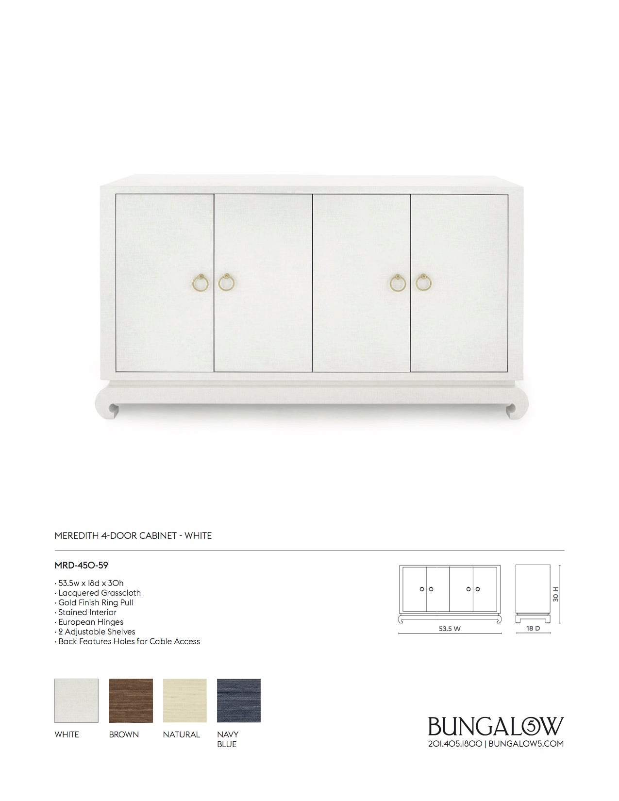 Meredith 4 Door Cabinet Chiffon White Lacquered Grasscloth