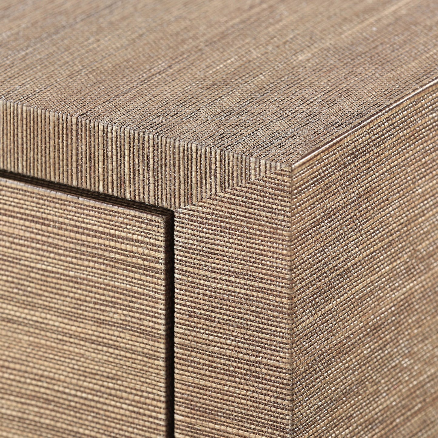 Gold Pulls; Lacquered Grasscloth; Brown Finish; Stained Interior With Full Extension Glides