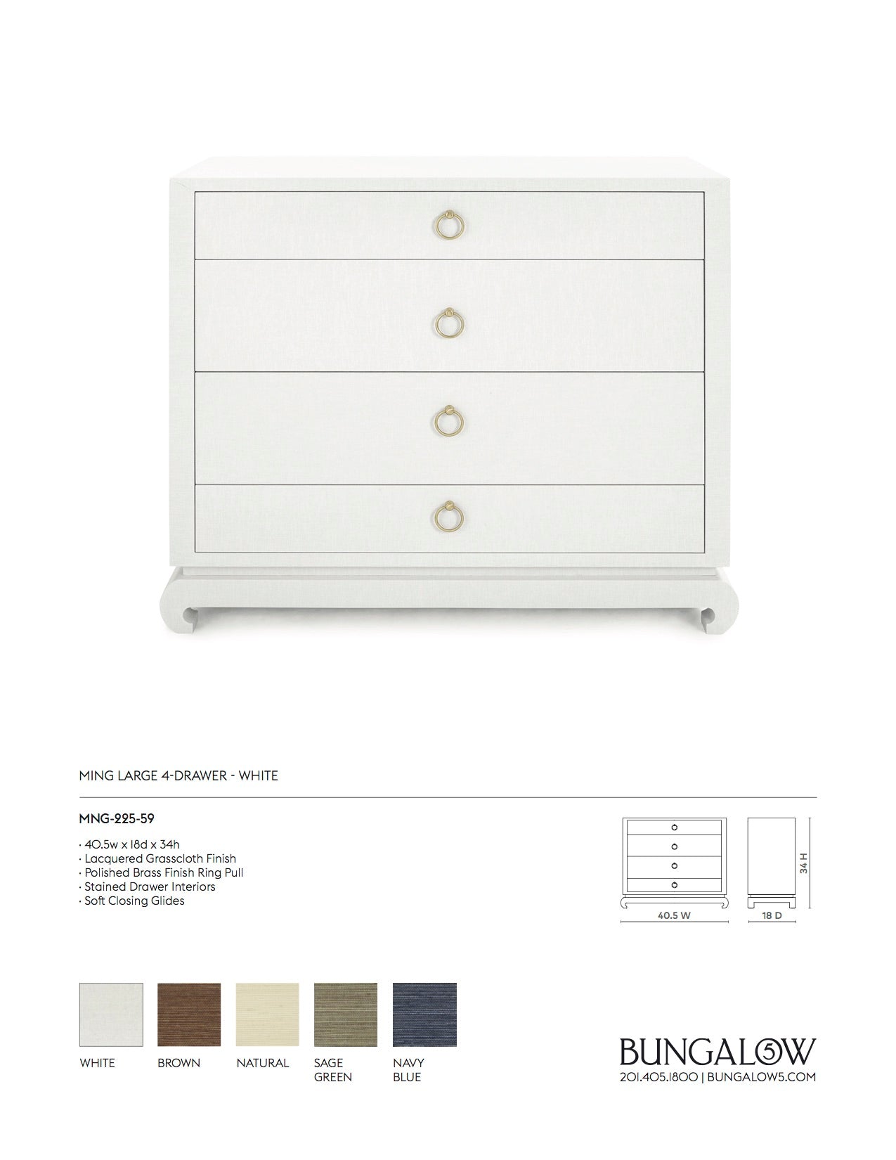 Ming Large 4 Drawer Chest Chiffon White Lacquered Grasscloth