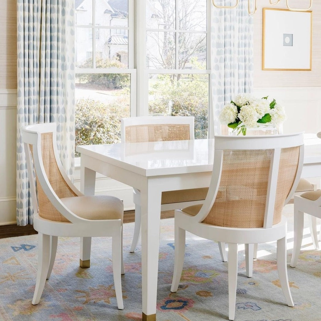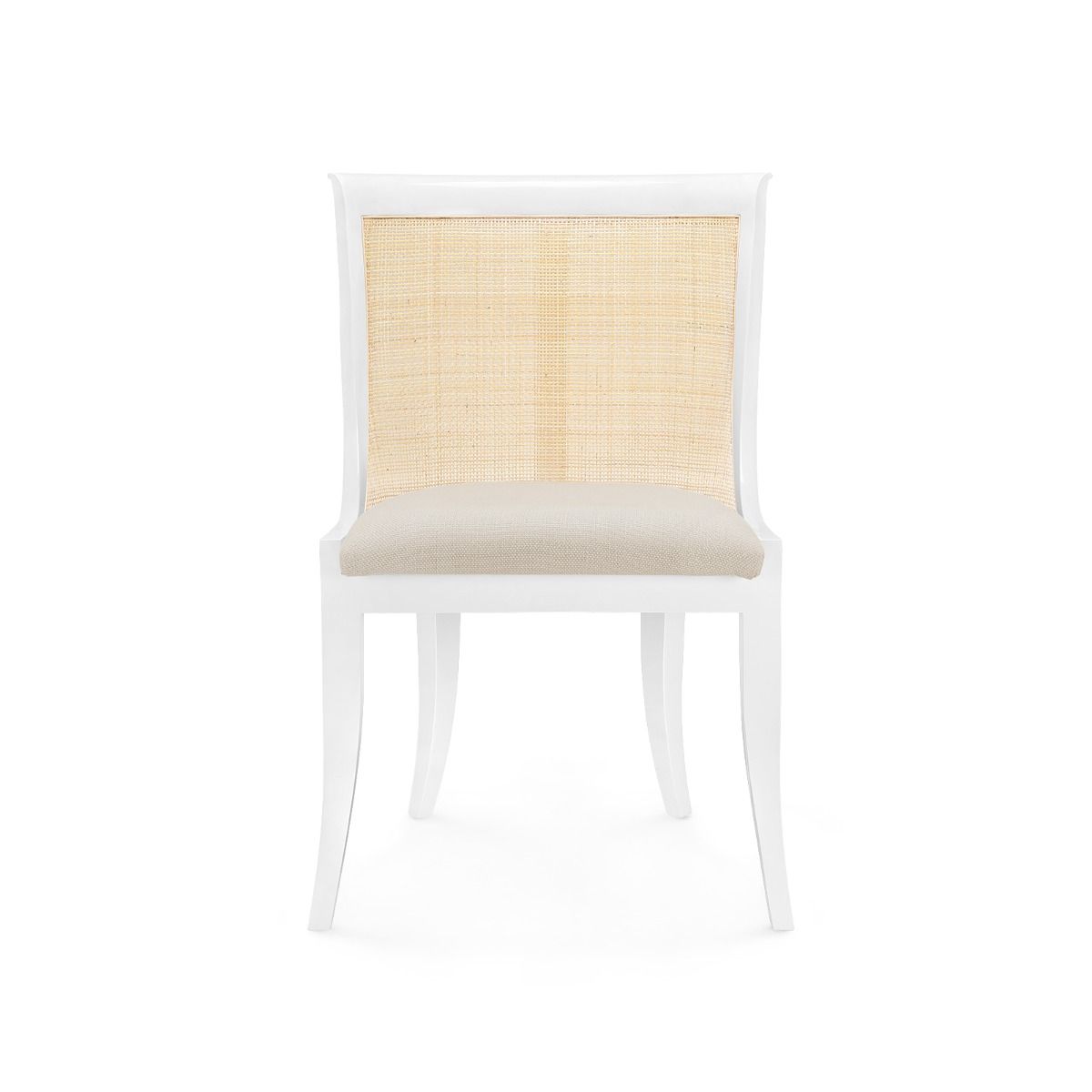 White Lacquer Mahogany; Cane Back; Linen Cushion in Natural (Photo is for reference only, actual color can vary widely from lot to lot)