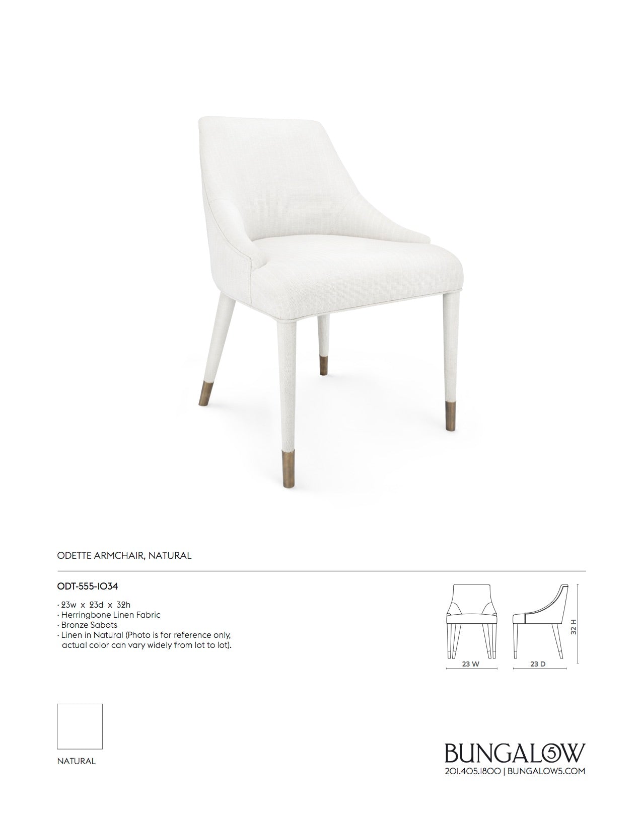 The elegant Odette Armchair from Villa & House is wrapped head to toe in natural linen and finished with custom bronze sabots. This versatile accent chair embraces an air of softness and quiet sophistication. The Odette easily complements the most stylish interior design needs of the modern home.
